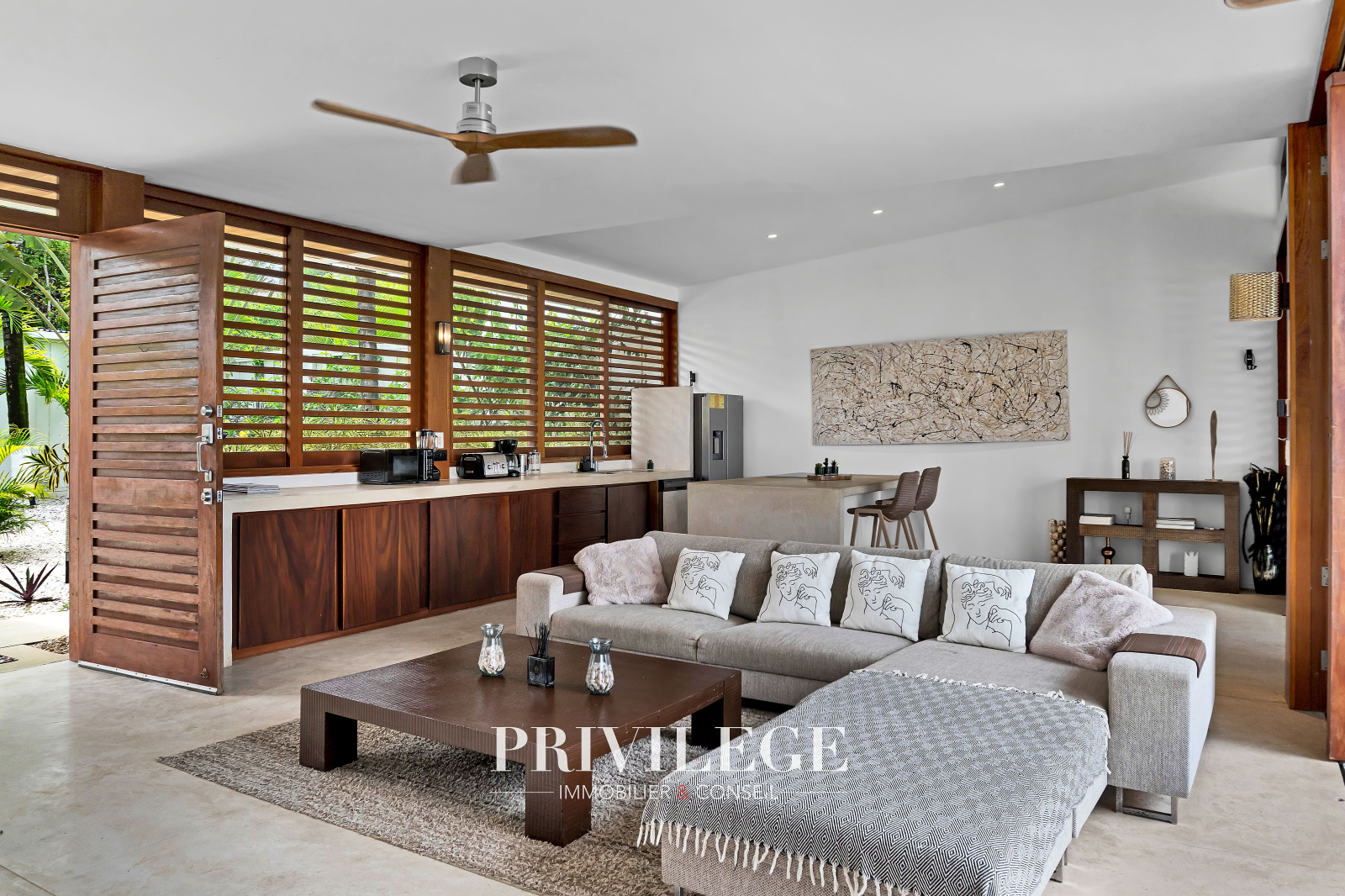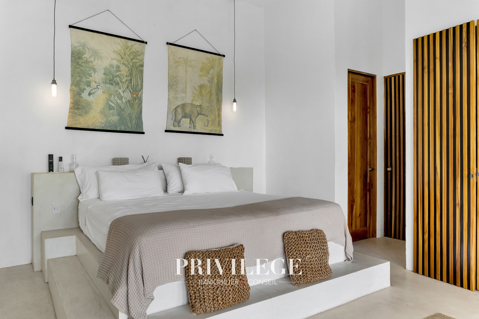 Découvrez un véritable havre de paix niché entre la jungle luxuriante et l’océan Pacifique. Située à Santa Teresa, cette villa contemporaine incarne l’élégance tropicale et offre un cadre de vie rare, entre nature préservée et prestations haut de gamme.