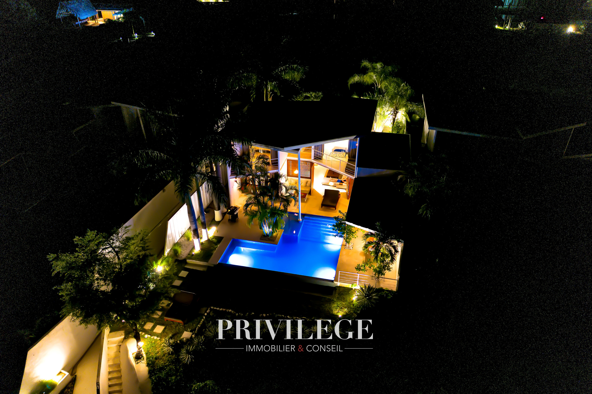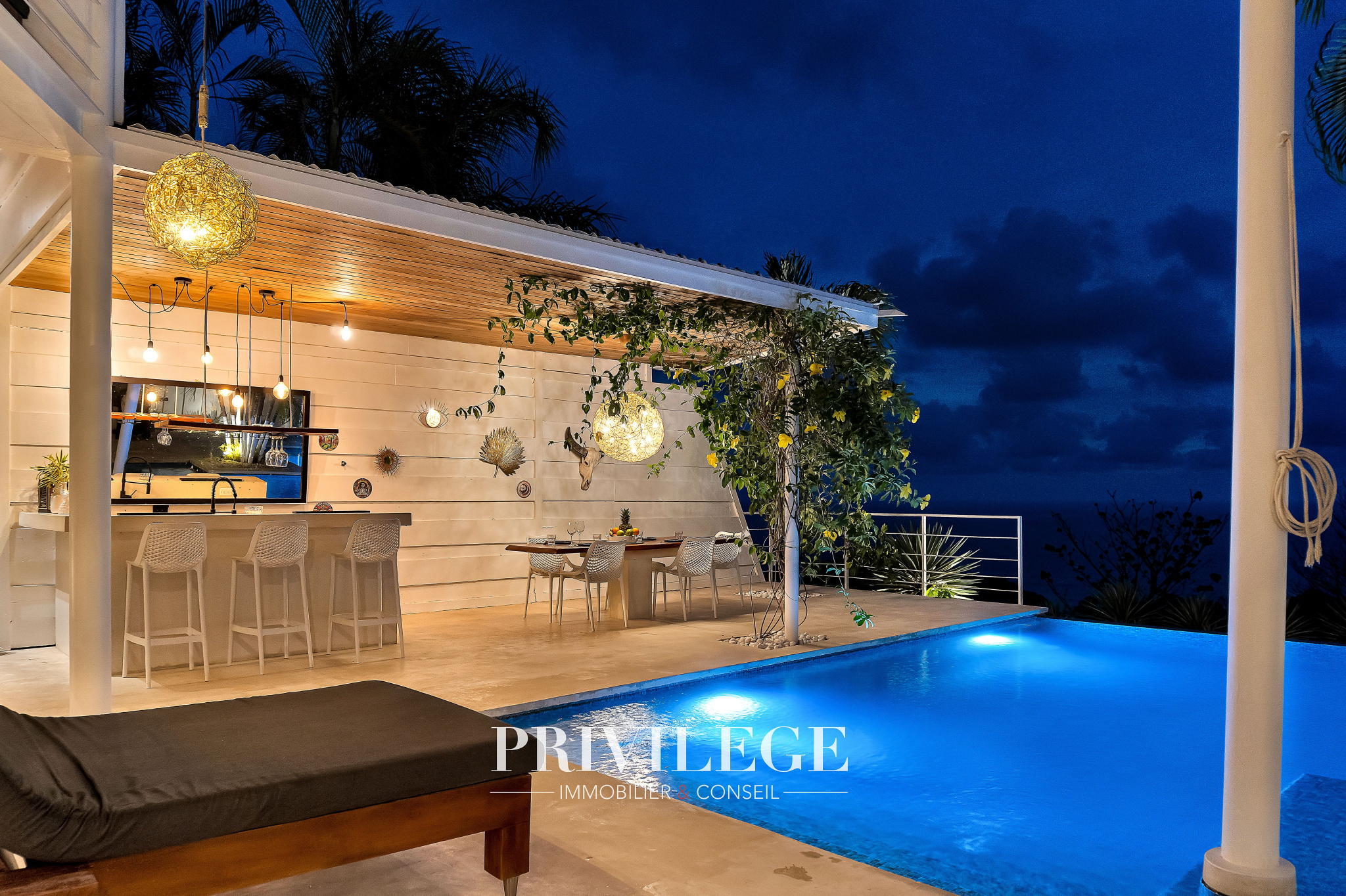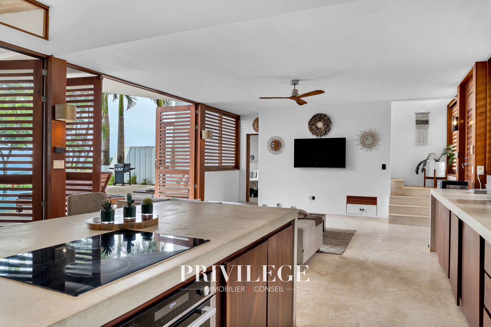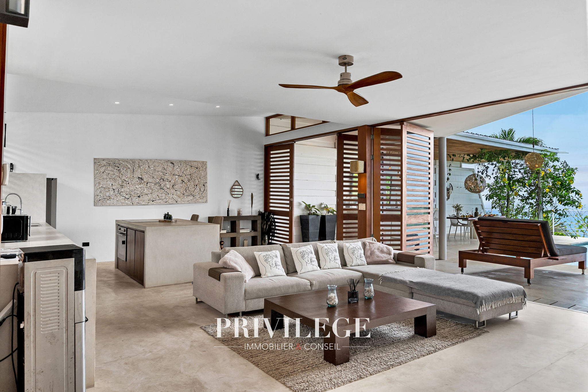D’une surface de 300 m², la villa se distingue par son architecture épurée et sa vue panoramique sur l’océan depuis chaque espace de vie. Elle comprend trois chambres spacieuses, avec la possibilité d’en aménager une quatrième selon vos besoins, ainsi que trois salles de bains et une salle d’eau. L’agencement a été pensé pour accueillir confortablement jusqu’à huit personnes.