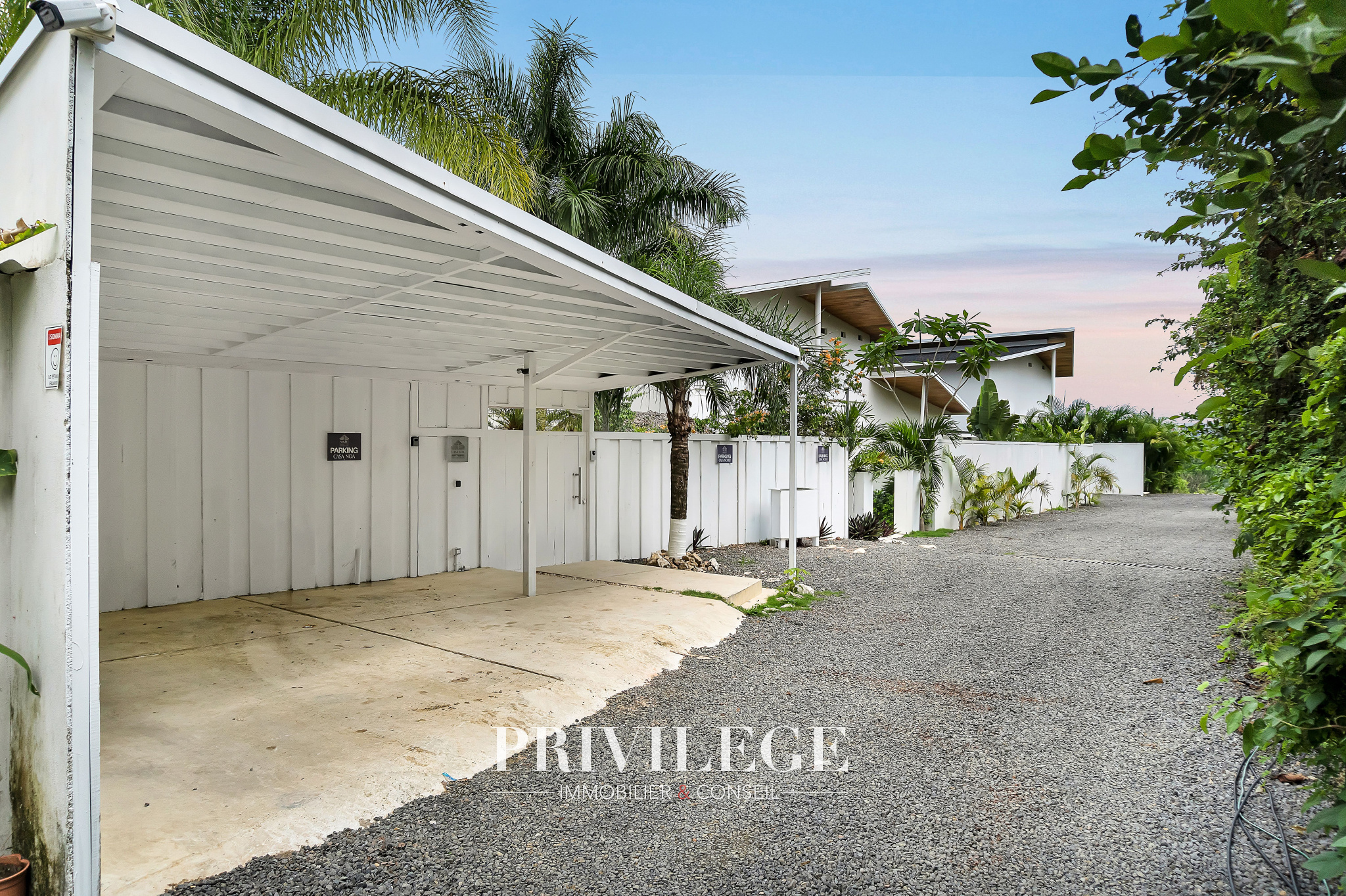 Parking couvert pour deux véhicules, buanderie et espaces de stockage