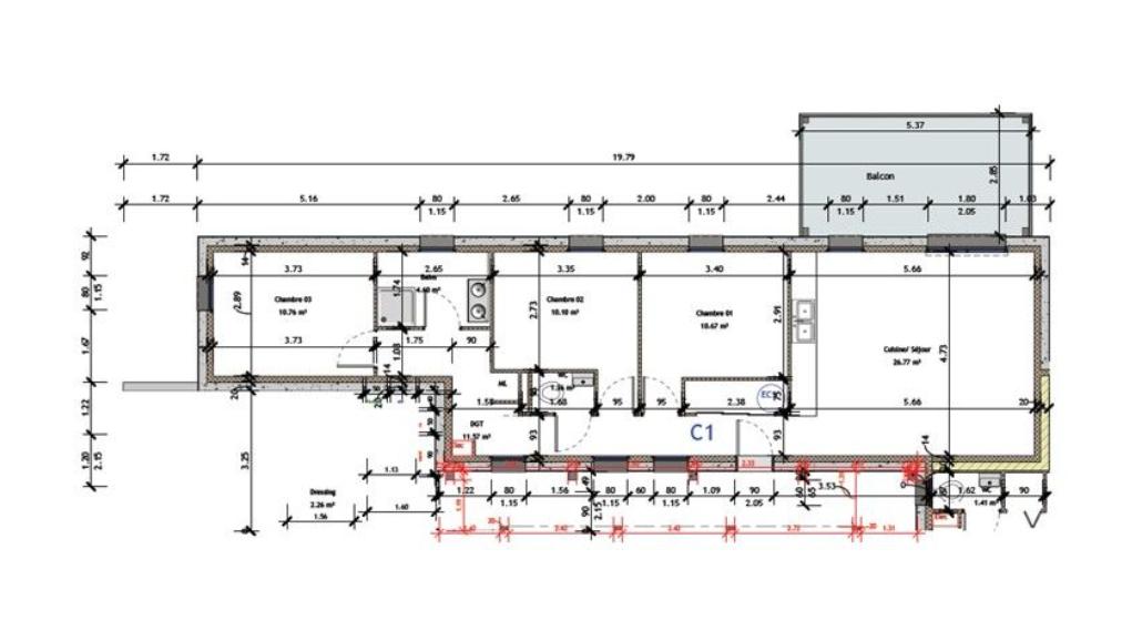 Prestations de qualité : menuiseries aluminium, porte blindée 4 points, VMC et chauffage individuels.