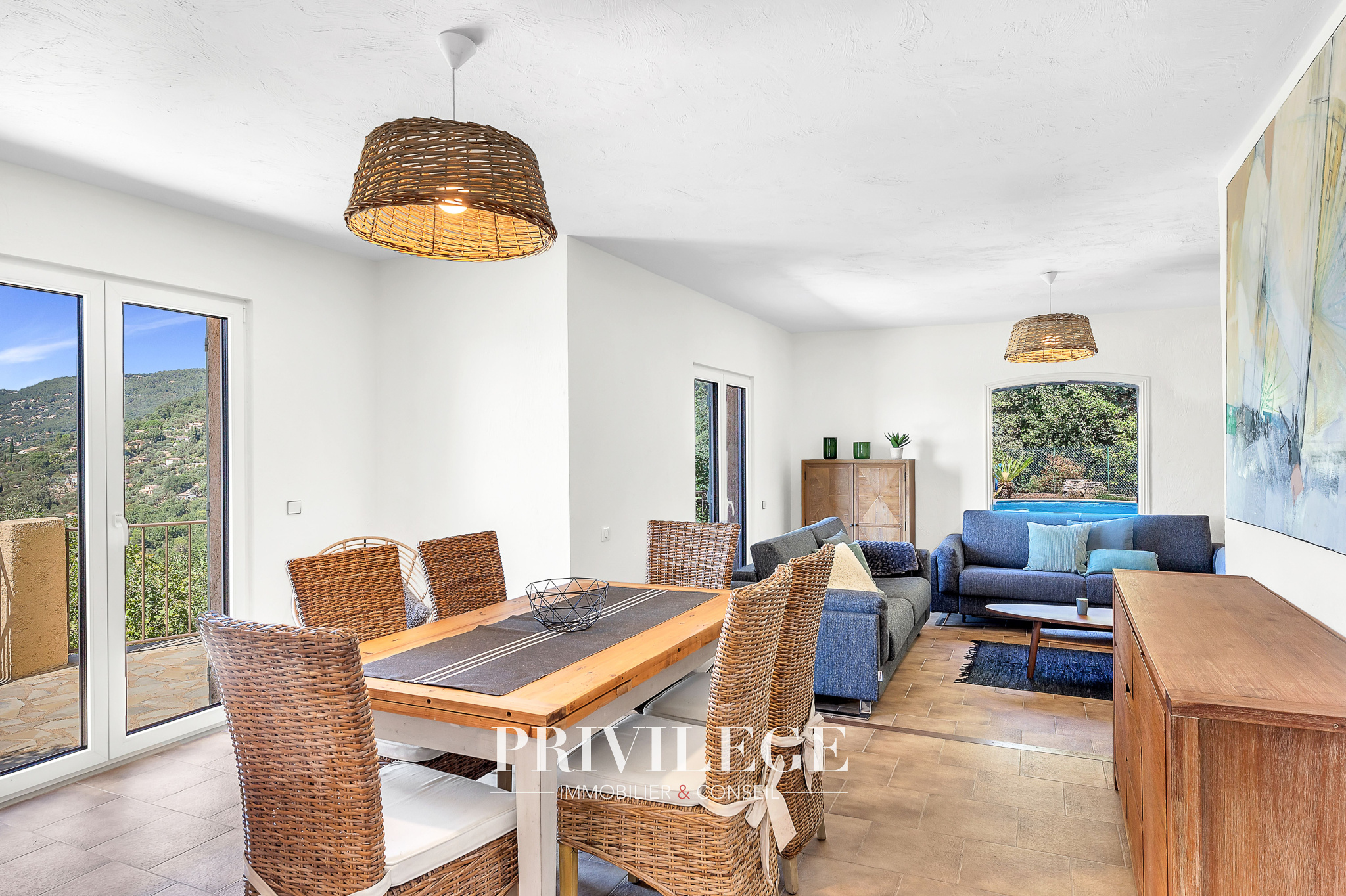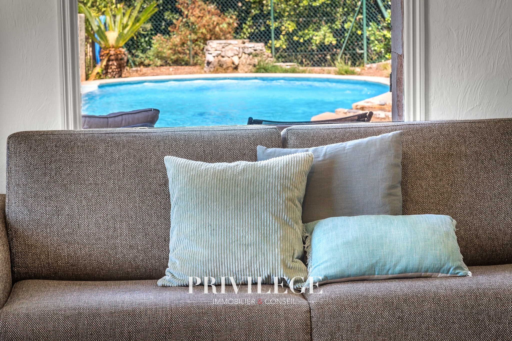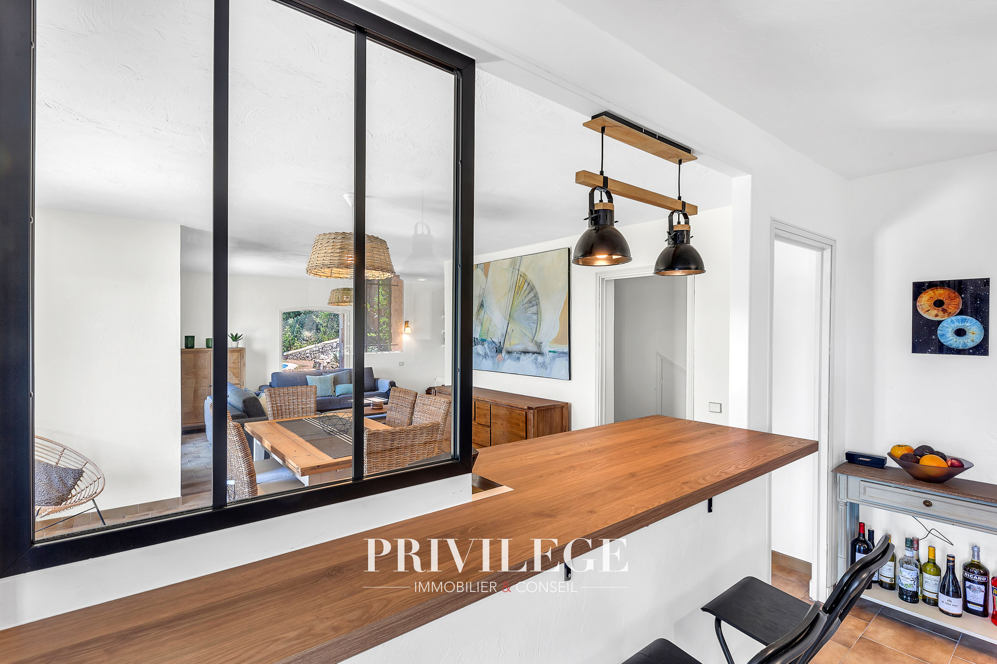 À l’extérieur : Terrain paysagé de 600 m² avec piscine et terrasse ensoleillée, 80 m² supplémentaires permettant jusqu’à 4 places de stationnement. Environnement privilégié, sans vis-à-vis