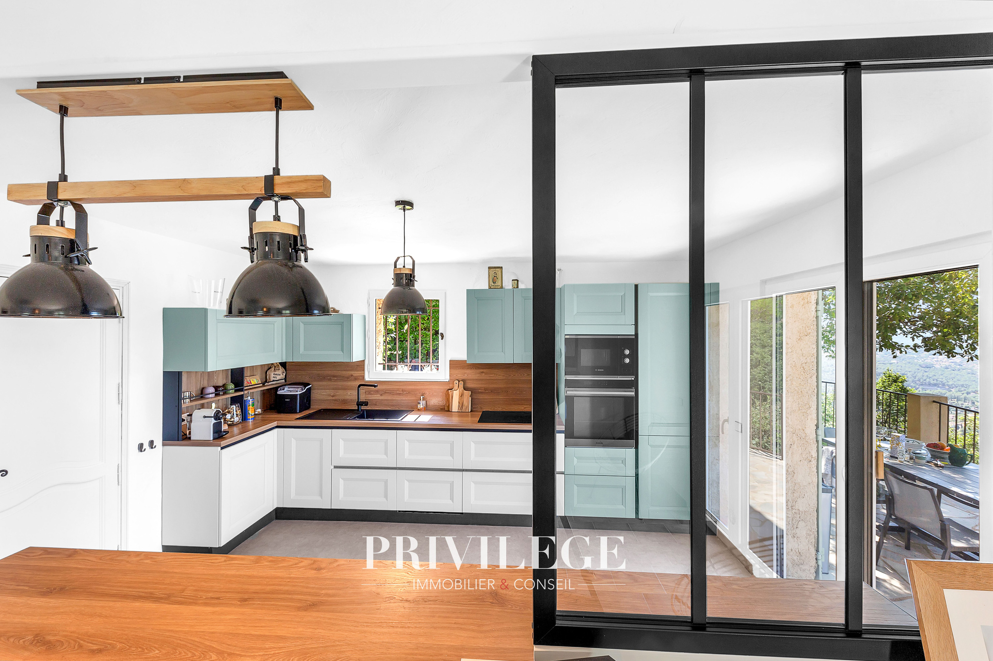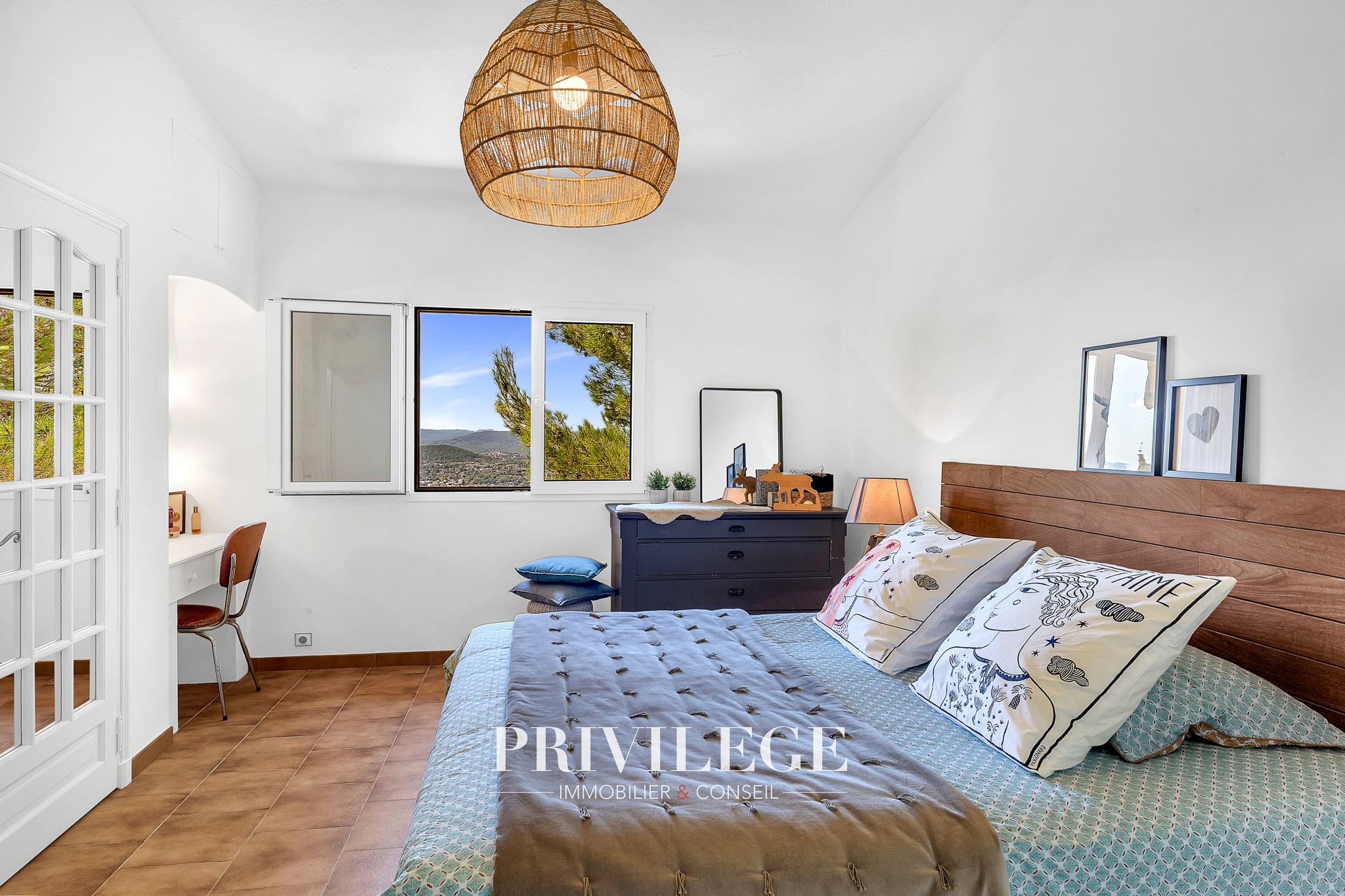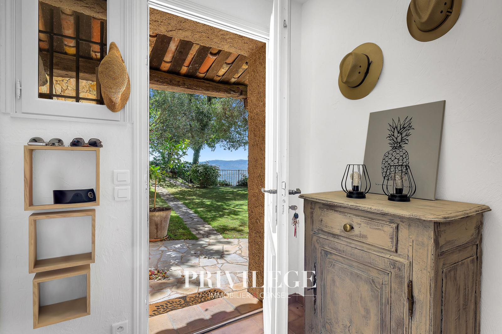 À l’extérieur : Terrain paysagé de 600 m² avec piscine et terrasse ensoleillée, 80 m² supplémentaires permettant jusqu’à 4 places de stationnement. Environnement privilégié, sans vis-à-vis