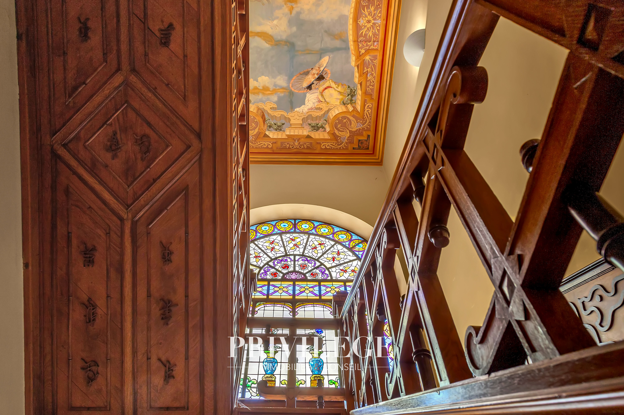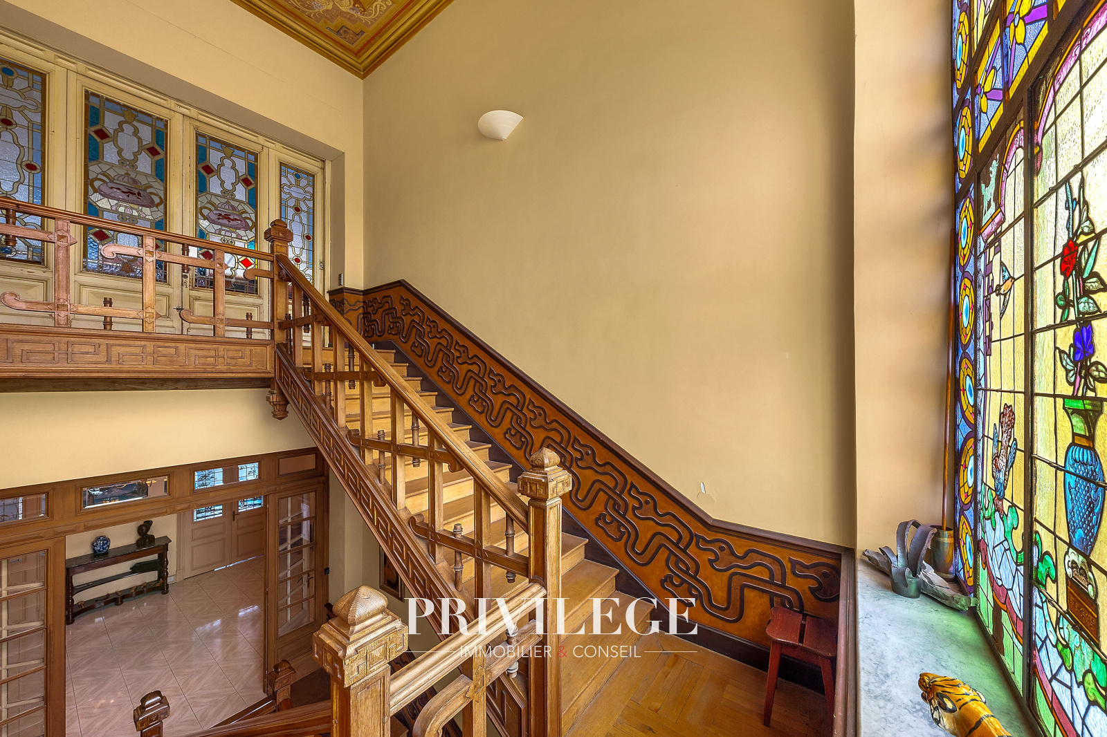 Située au cœur d’un quartier vivant et recherché de Nice, à proximité immédiate des universités, commerces et transports (tramway, bus, accès autoroute), cette demeure d’exception incarne à la perfection le charme historique et architectural de la Côte d’Azur. Édifiée en 1901 par un industriel niçois de retour d’Indochine, cette villa de style colonial extrême-oriental fascine par son architecture singulière et ses détails d’époque préservés : Vitraux signés par un maître verrier, Frises en céramique d’origine, Ferronneries Art Nouveau, Descentes d’eau en bambou, et un belvédère dominant offrant une vue panoramique sur les toits de Nice et la mer Méditerranée. Transmise de génération en génération depuis 1944, cette propriété incarne une véritable part du patrimoine niçois, témoignant d’une histoire familiale et architecturale rare. Élevée sur quatre niveaux, la propriété développe près de 824 m² habitables, complétés par des annexes ( locaux techniques, garage). Niché dans un écrin de verdure, le jardin confère à l’ensemble une atmosphère paisible et raffinée, à seulement quelques minutes du centre de Nice, 5e ville de France et capitale de la Côte d’Azur. Ce bien rare, au potentiel multiple, se prête à de nombreux projets : Résidence familiale de prestige, Siège d’une fondation ou d’un centre culturel, Bureaux haut de gamme, ou projet de réhabilitation patrimoniale. Une adresse unique, témoin d’un savoir-faire architectural du début du XXe siècle, où histoire, élégance et art de vivre niçois se conjuguent à la perfection.