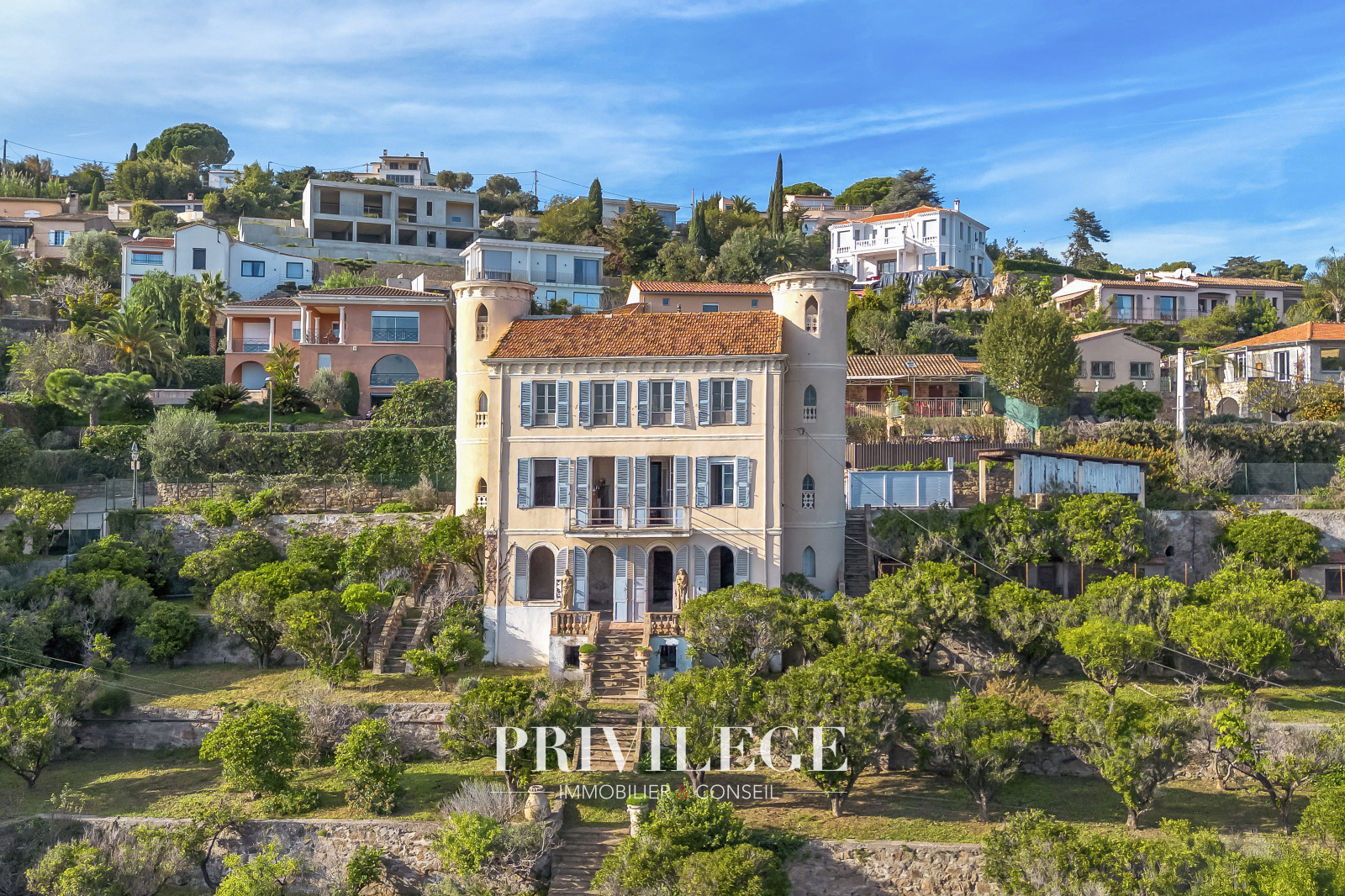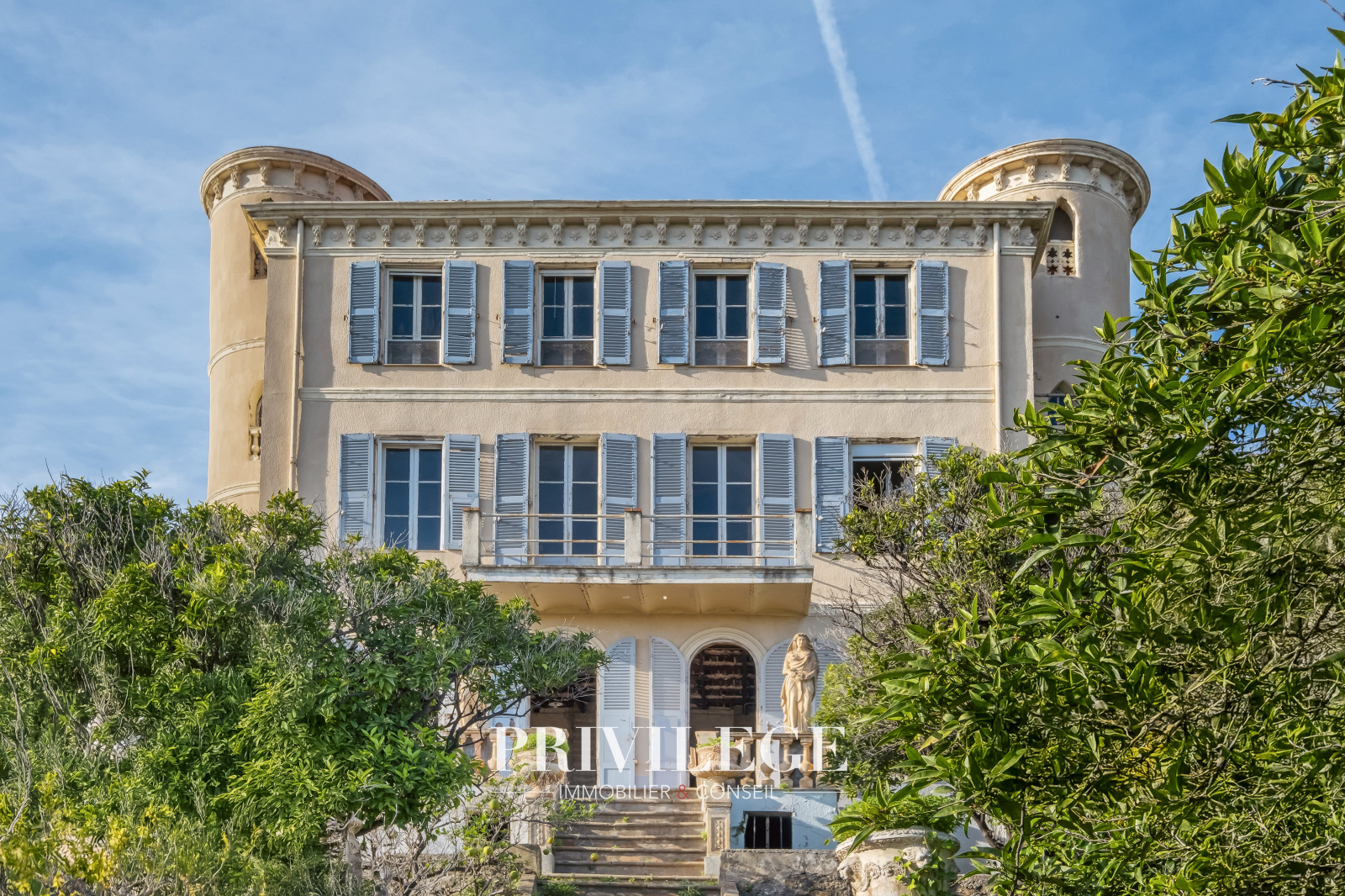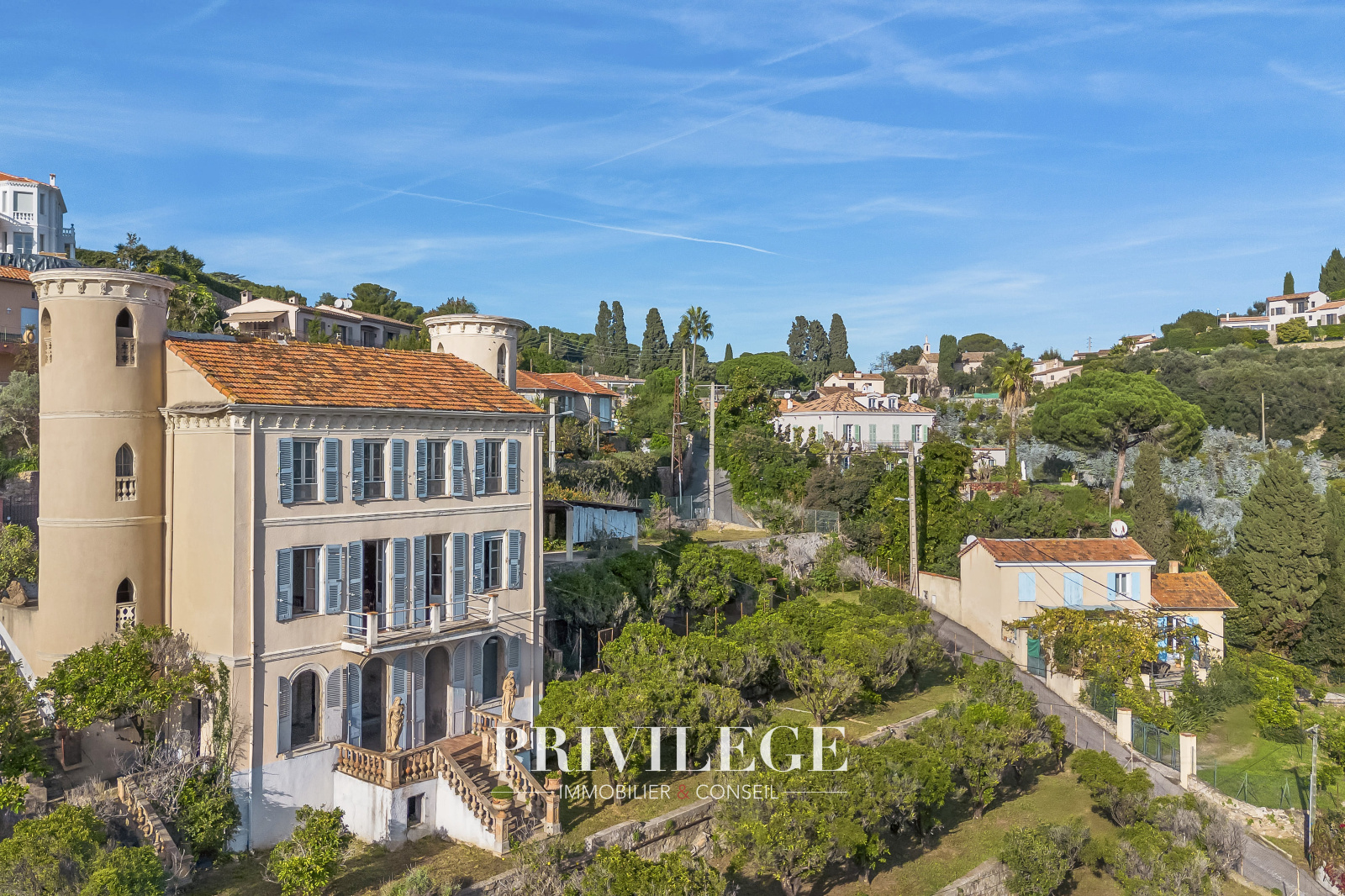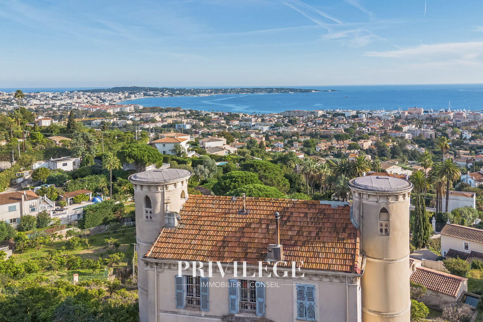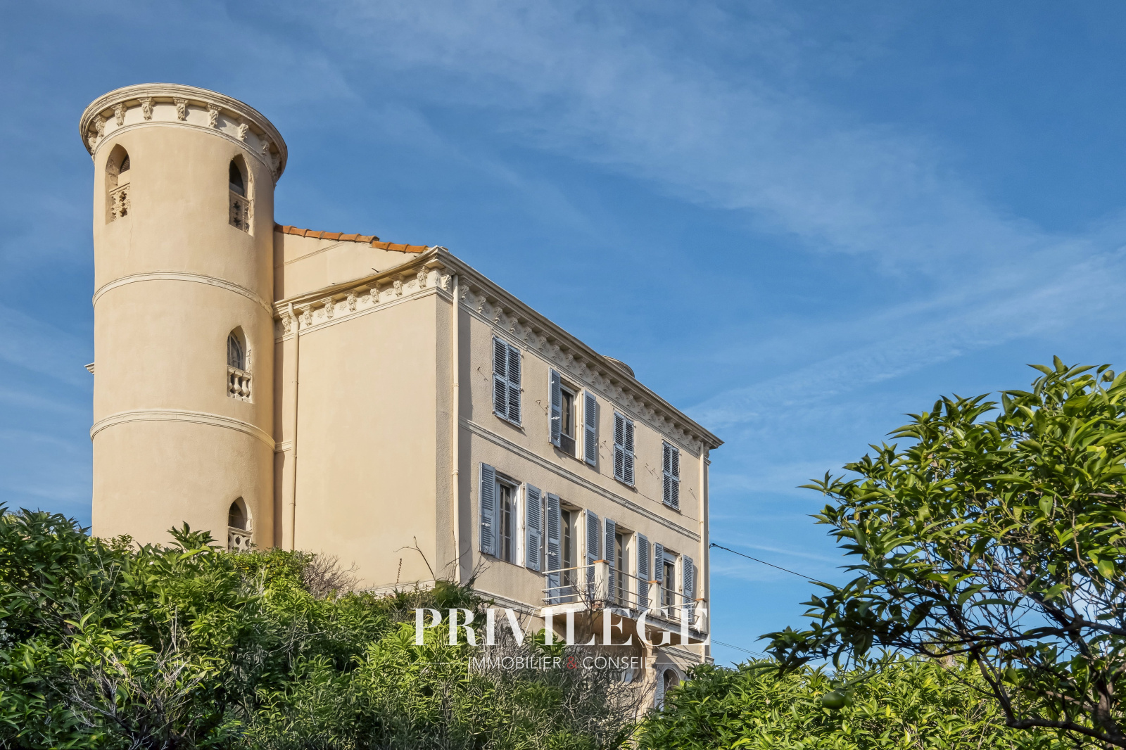 En Exclusivité, nous avons le plaisir de vous présenter une propriété d'exception située à Golfe-Juan, sur le chemin Lintier. Cette demeure de caractère, édifiée en 1870, s'étend sur une surface utile de 305 m². Dotée de deux tours au style château, elle confère une dimension historique et unique à l’ensemble.