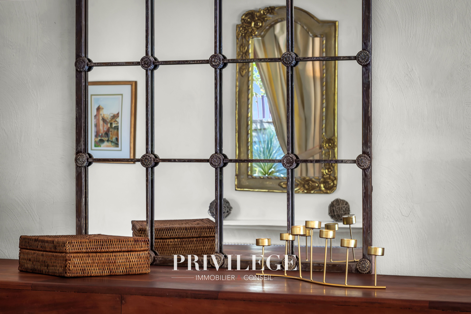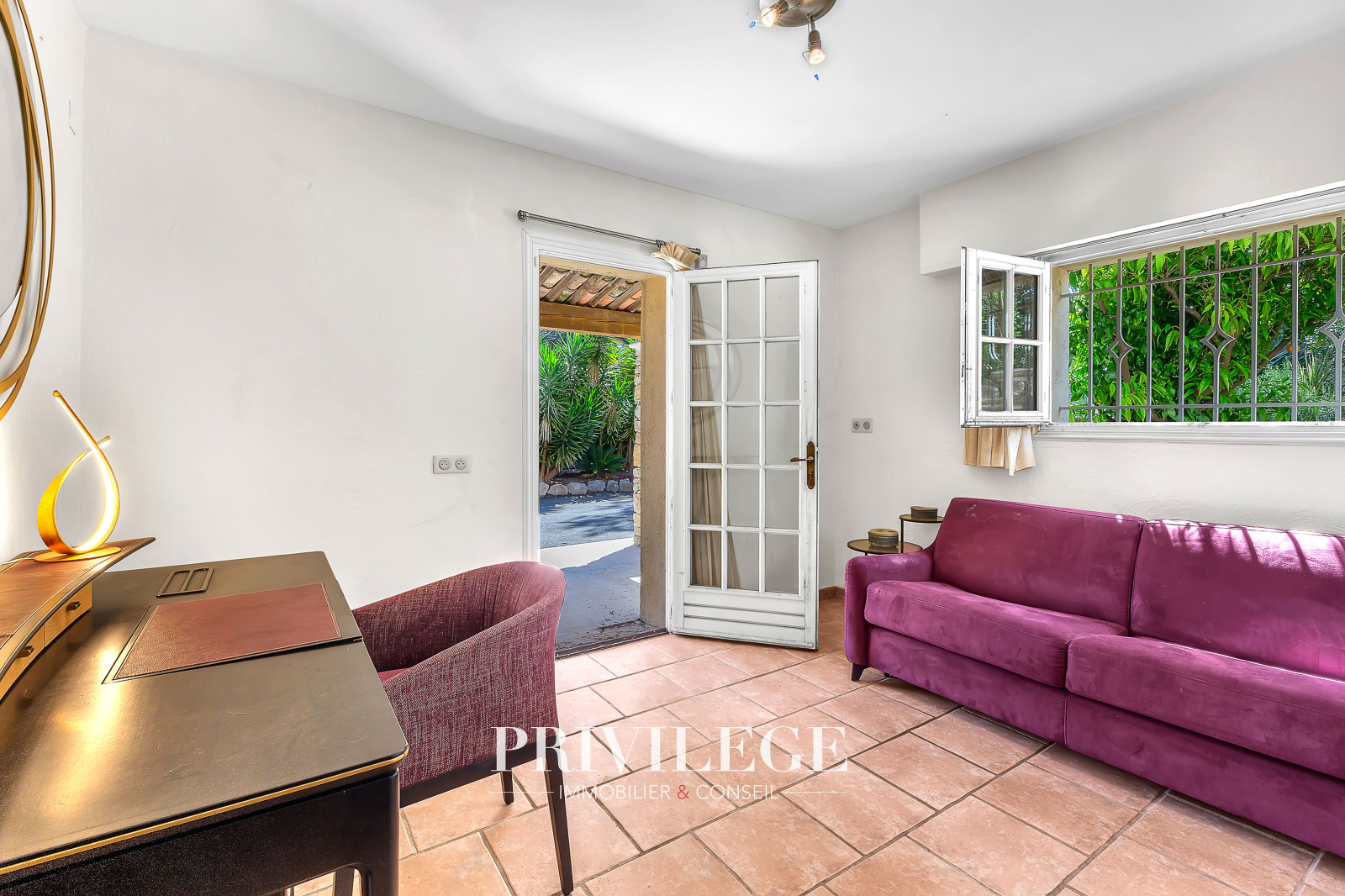 Implantée sur un magnifique jardin paysager, la villa séduit par la richesse de sa végétation méditerranéenne : de nombreux oliviers, ainsi qu’une belle variété d’arbres fruitiers tels que pamplemoussier, abricotier, citronnier, oranger, mandarinier… et bien d’autres encore aux senteurs anisées.