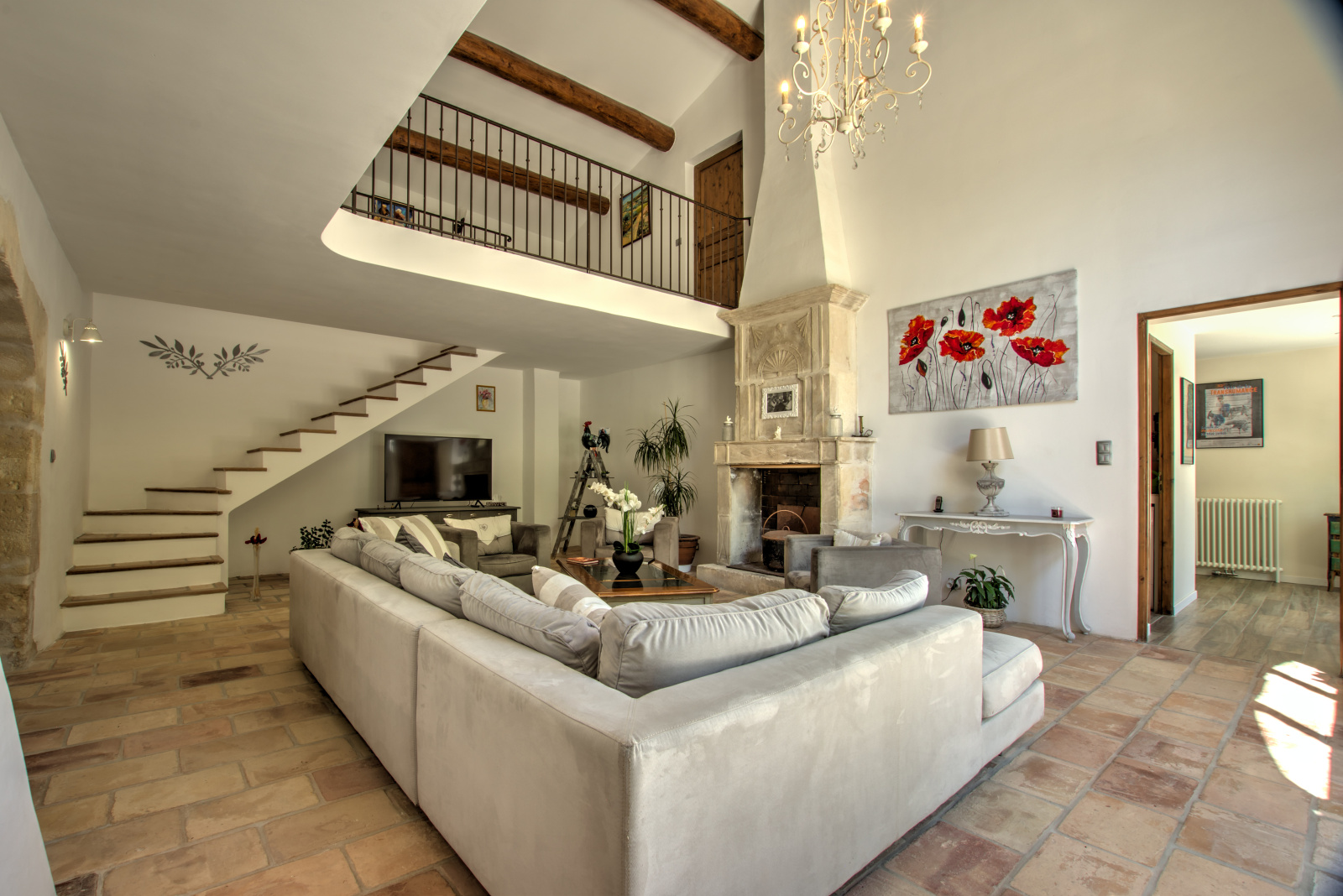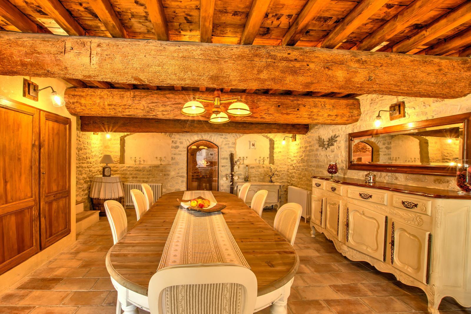 Un Salon en cathédrale, une cave à vin somptueuse, des poutres apparentes, des volumes incroyables et des tomettes anciennes.