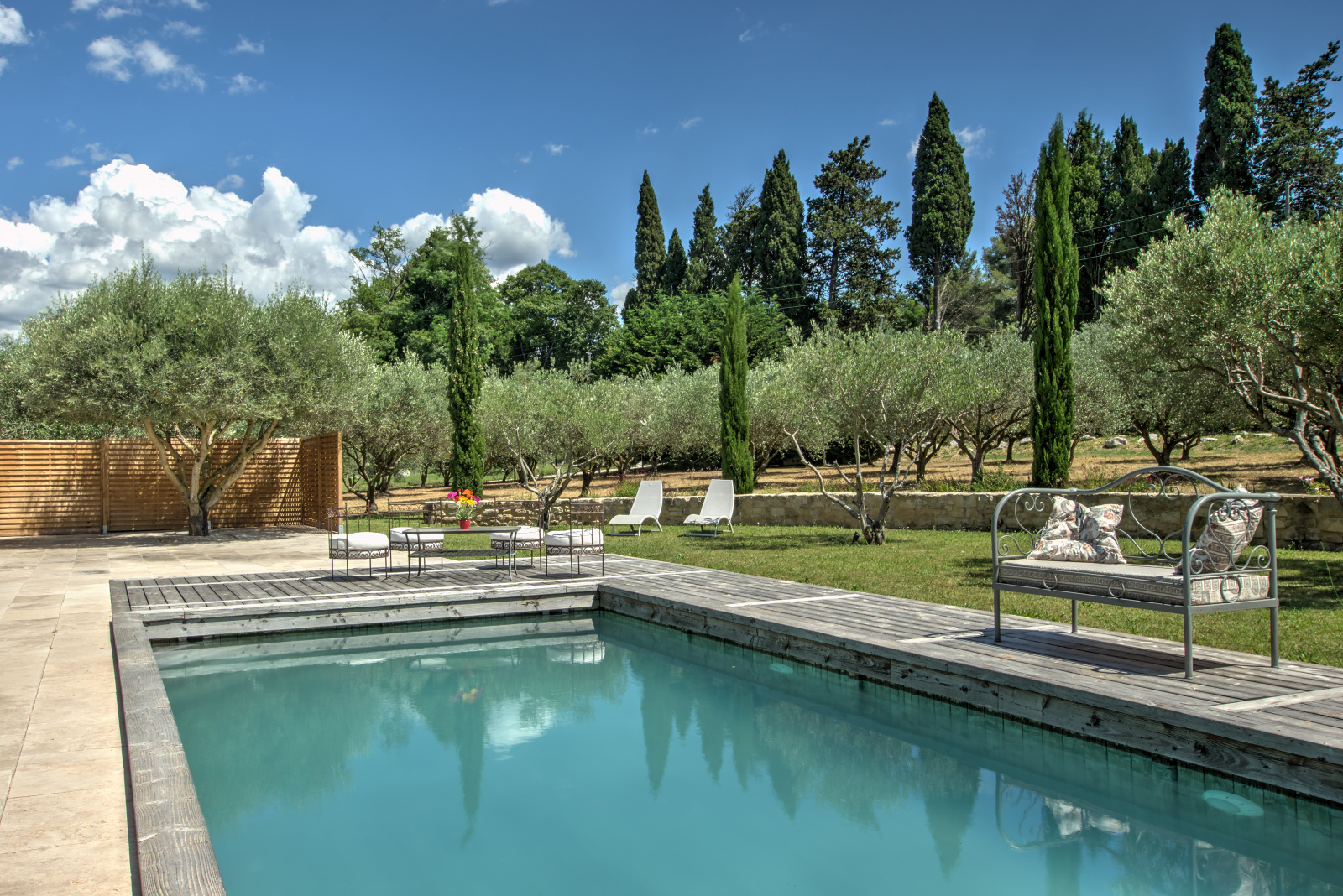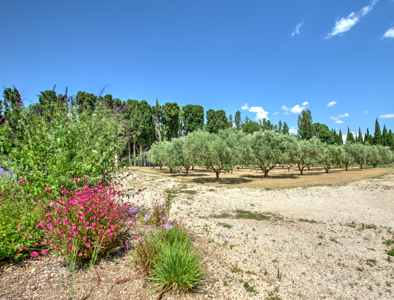 Le jardin d’un hectare propose de nombreux espaces dont une oliveraie ainsi que trois piscines avec Pool House. L’ensemble a été réalisé par un paysagiste de renom