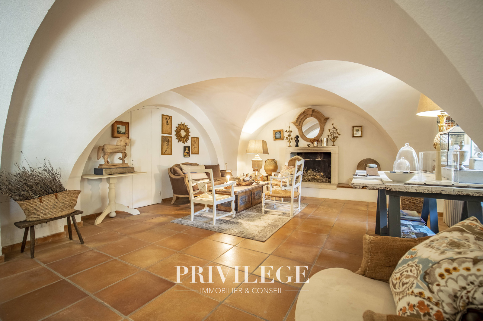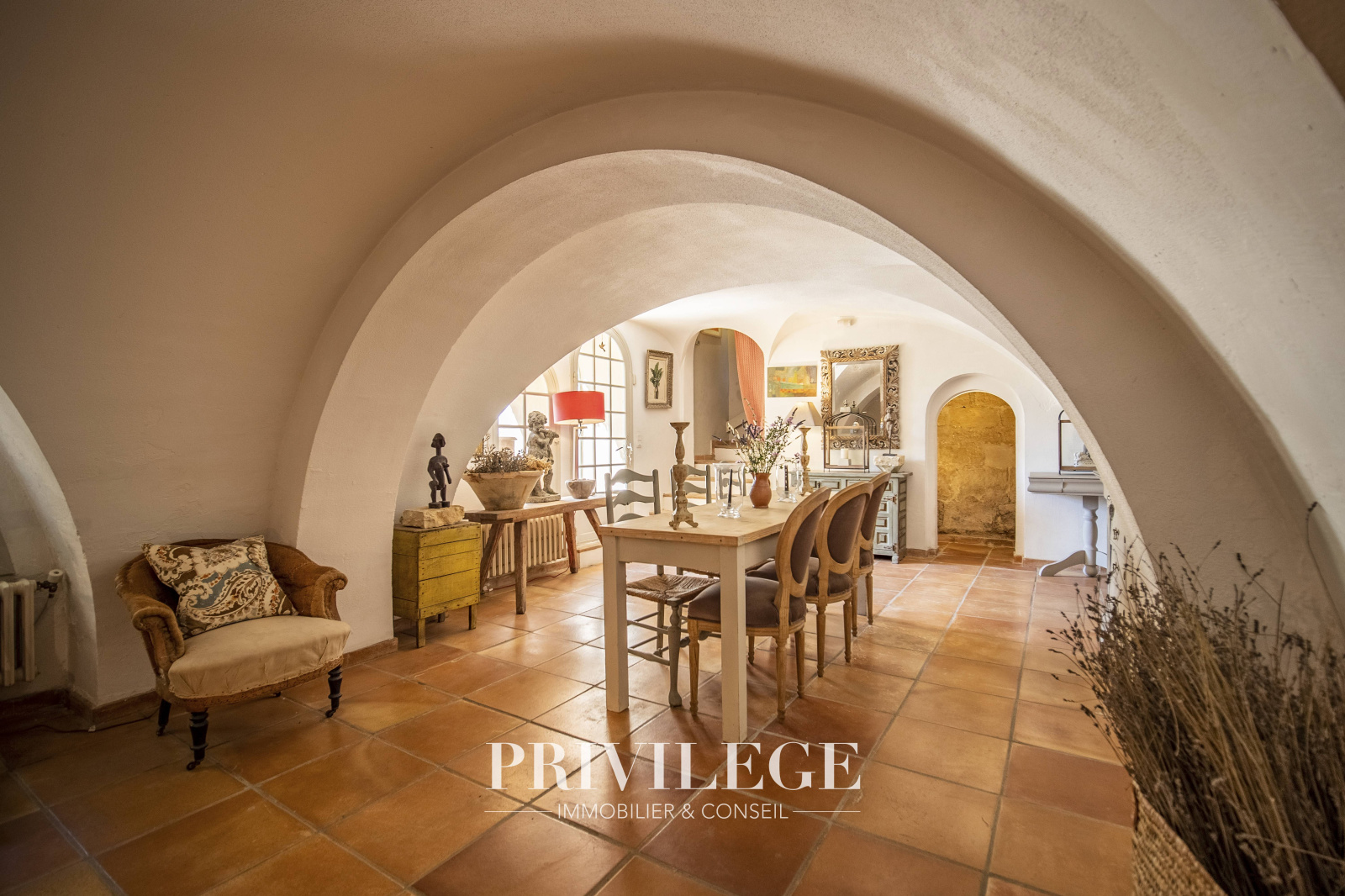 Cette sublime demeure propose au rez-de-chaussée une entrée voûtée, un salon de 43 m2 sous arches, une salle à manger et une cuisine aménagée de type provençal.