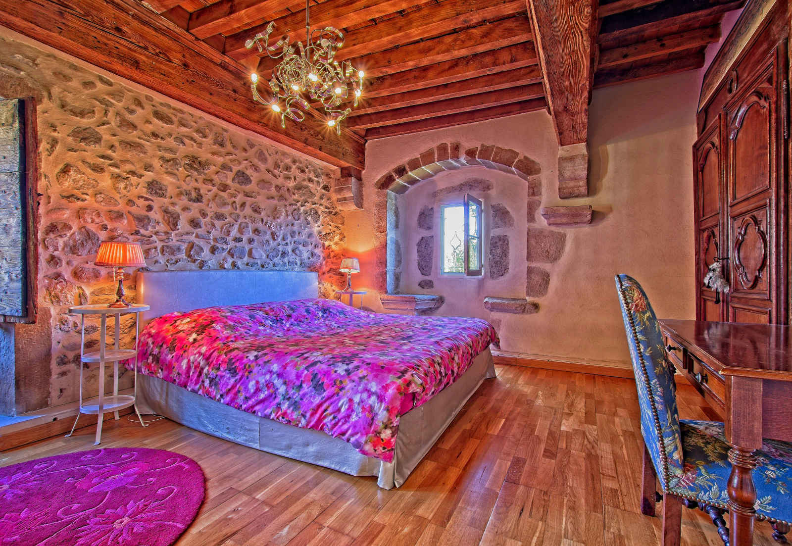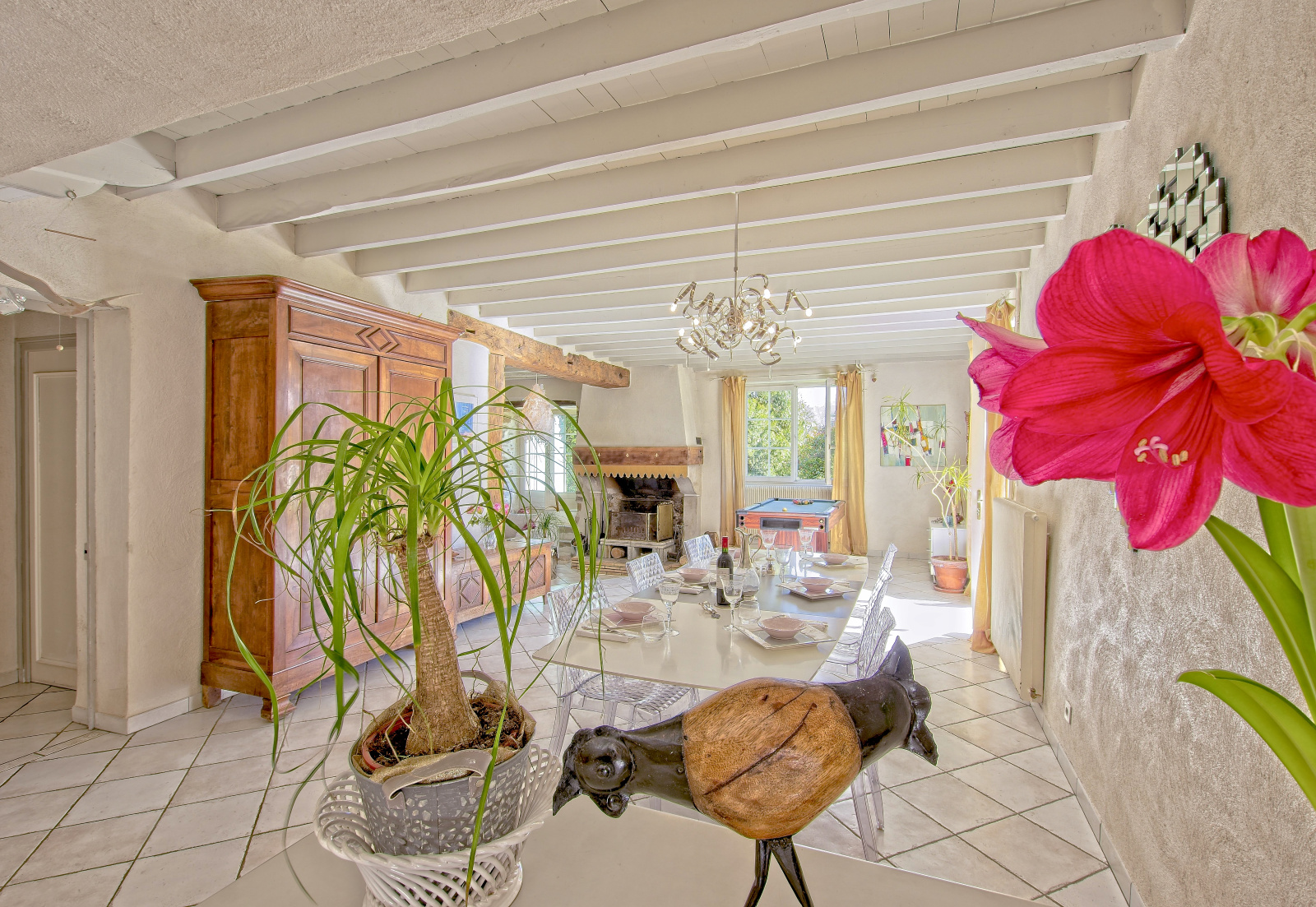 Le RDC s’ouvre sur une double réception de 60 m2 donnant sur les 2 terrasses et le parc, un salon avec cheminée. La cuisine équipée a trouvé sa place dans la tour. Un bel escalier de pierre vous conduit à l’étage ou vous trouvez 5 chambres dont 3 chambres spacieuses avec leur salle de bain complète privative. Un escalier en bois mène aux combles, avec sa charpente imposante, prêtes à être aménagées environ 90 m2 d'aménagement possible.