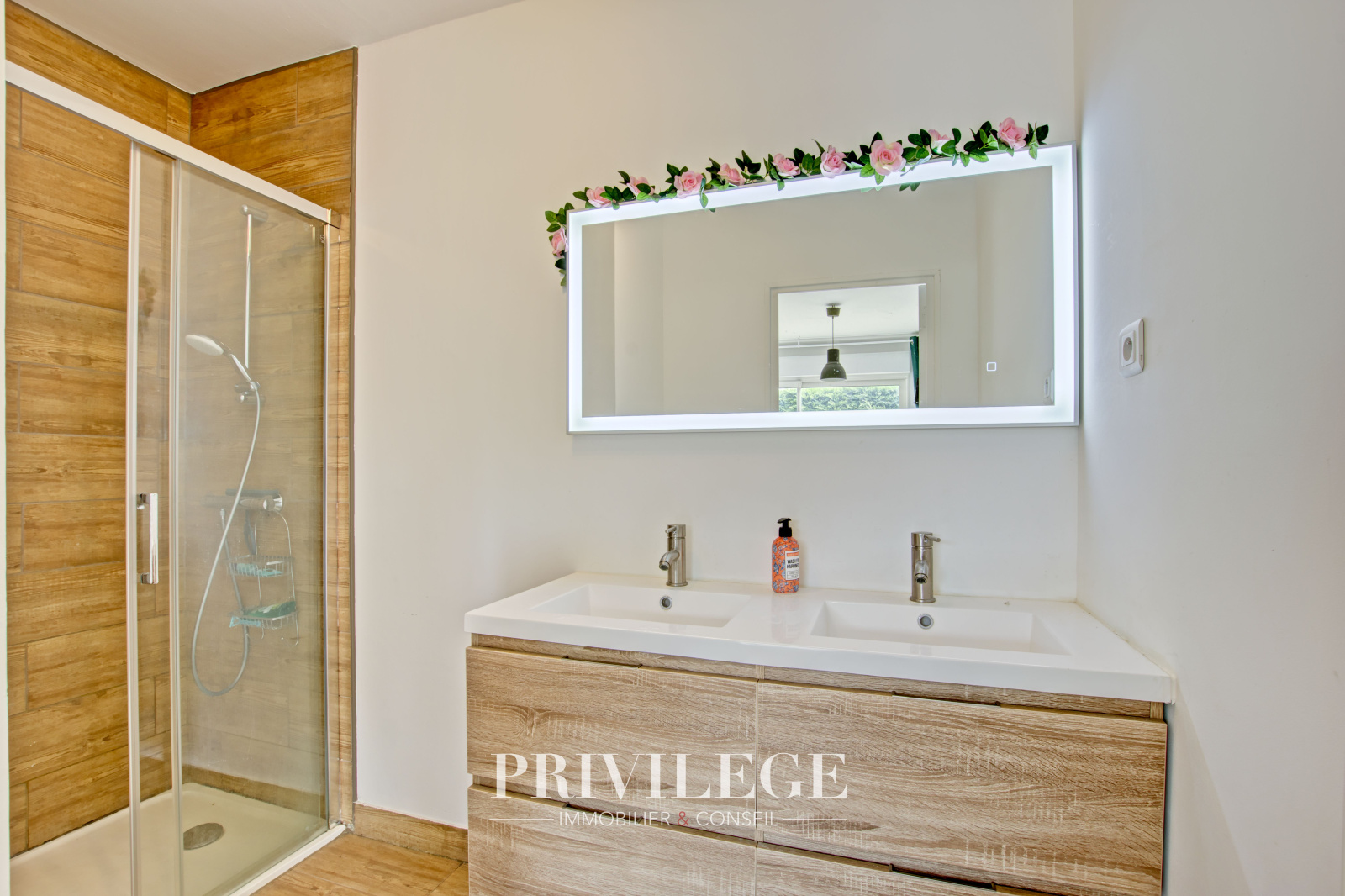 Dès votre arrivée, vous serez charmé par l'intimité offerte par cette maison, sans vis-à-vis. À l'intérieur, vous découvrirez un espace de vie chaleureux et confortable, doté d'un système de chauffage centralisé avec pompe à chaleur pour une efficacité énergétique optimale. Les volets roulants électriques centralisés ainsi que le portail électrique ajoutent une touche de modernité et de praticité à cette demeure.