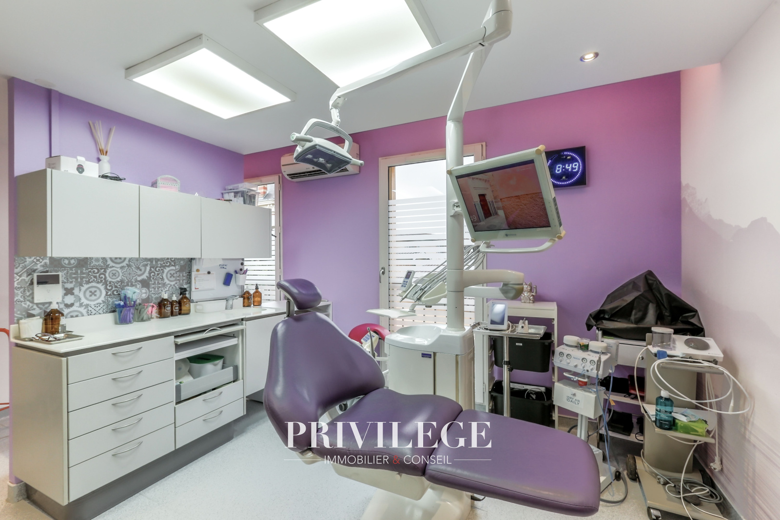 Actuellement aménagé en cabinet dentaire, il se compose d’un hall d’accueil, d’une salle d’attente, de WC, d’une cuisine équipée, d’une salle de stérilisation, d’une salle radio et de deux cabinets principaux.