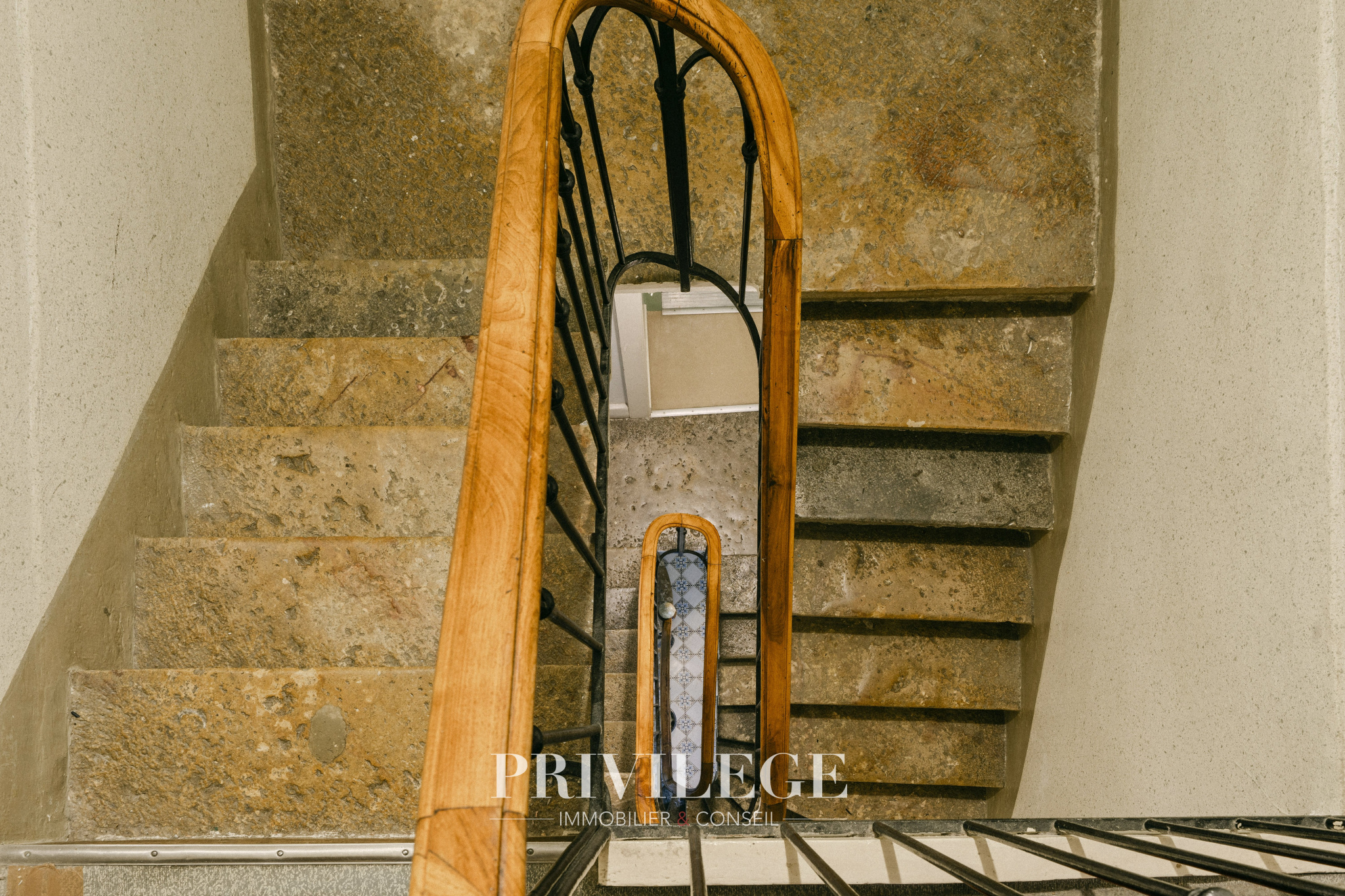 Elle se compose de 3 niveaux d'environ 150 m2 avec de nombreux élèments anciens : escaliers en pierre, carreaux de ciment, anciennes fenêtres, etc.