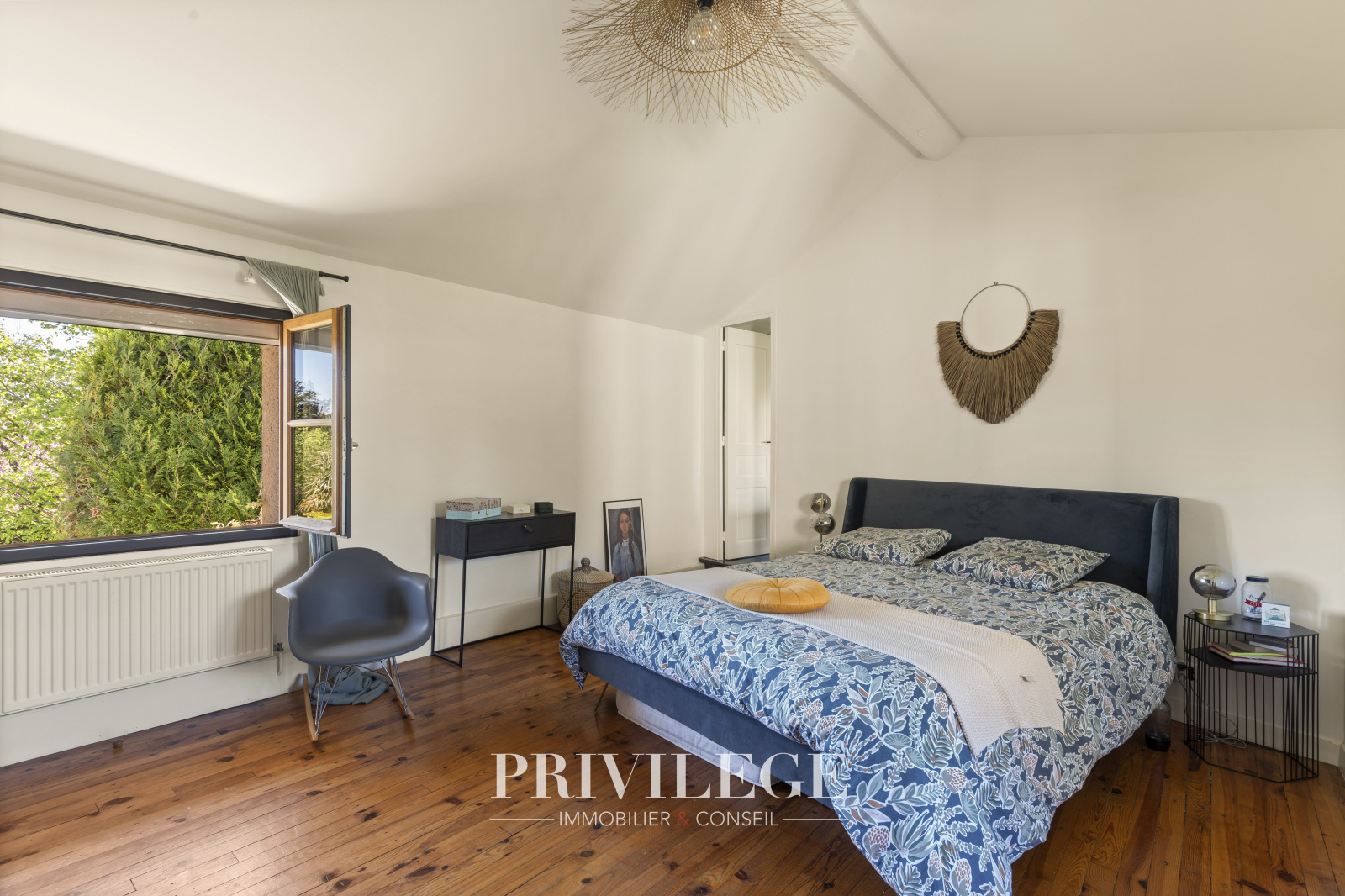 À l'étage, une première chambre avec terrasse, une deuxième chambre, et une salle de douche indépendante. La grande suite parentale avec sa salle de bain attenante et toilettes privatives s'ouvre sur un balcon.