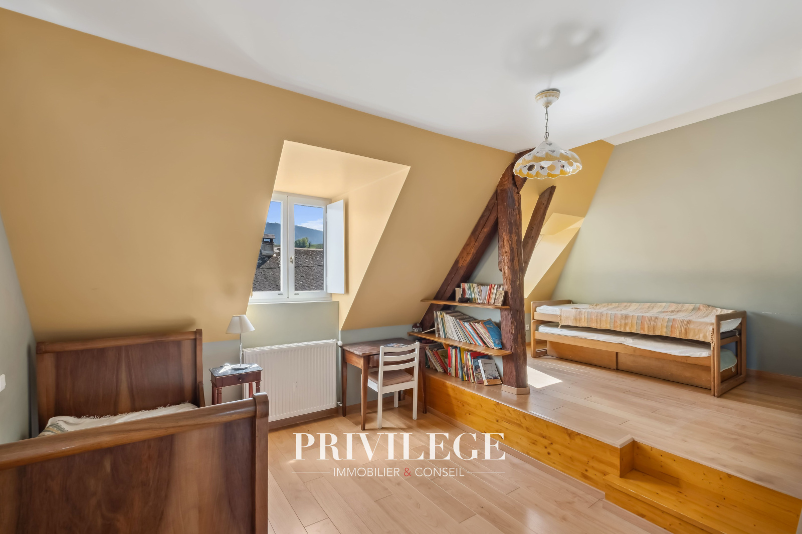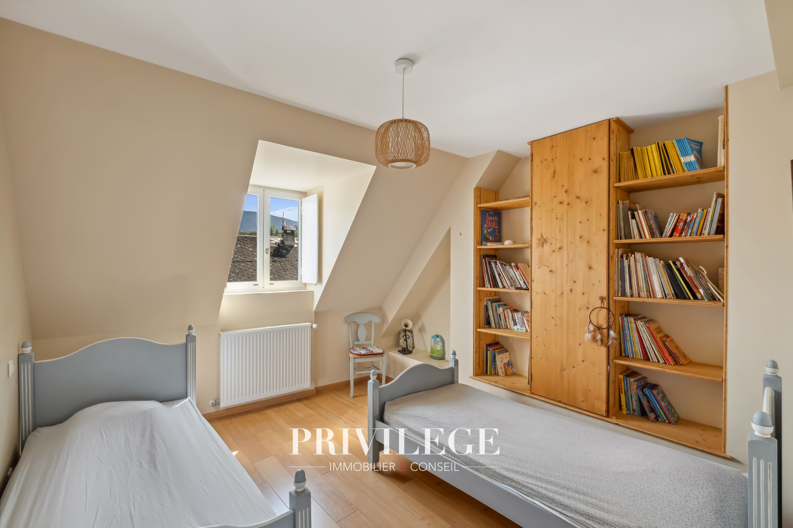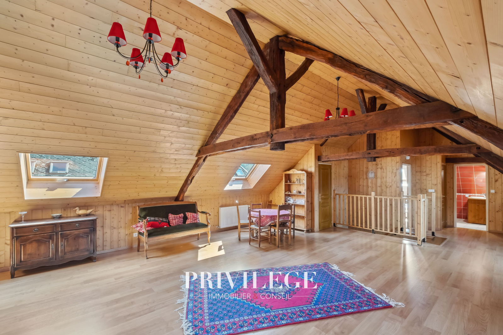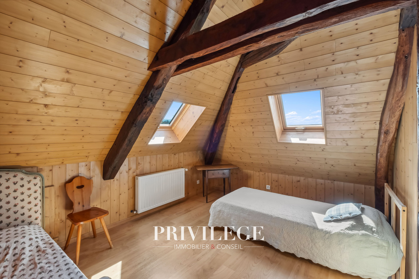 Les étages accueillent les espaces nuit, avec des chambres confortables, salles de bains et un niveau de combles aménagé comprenant déjà une chambre avec sa salle de bains, offrant un potentiel supplémentaire d’aménagement.