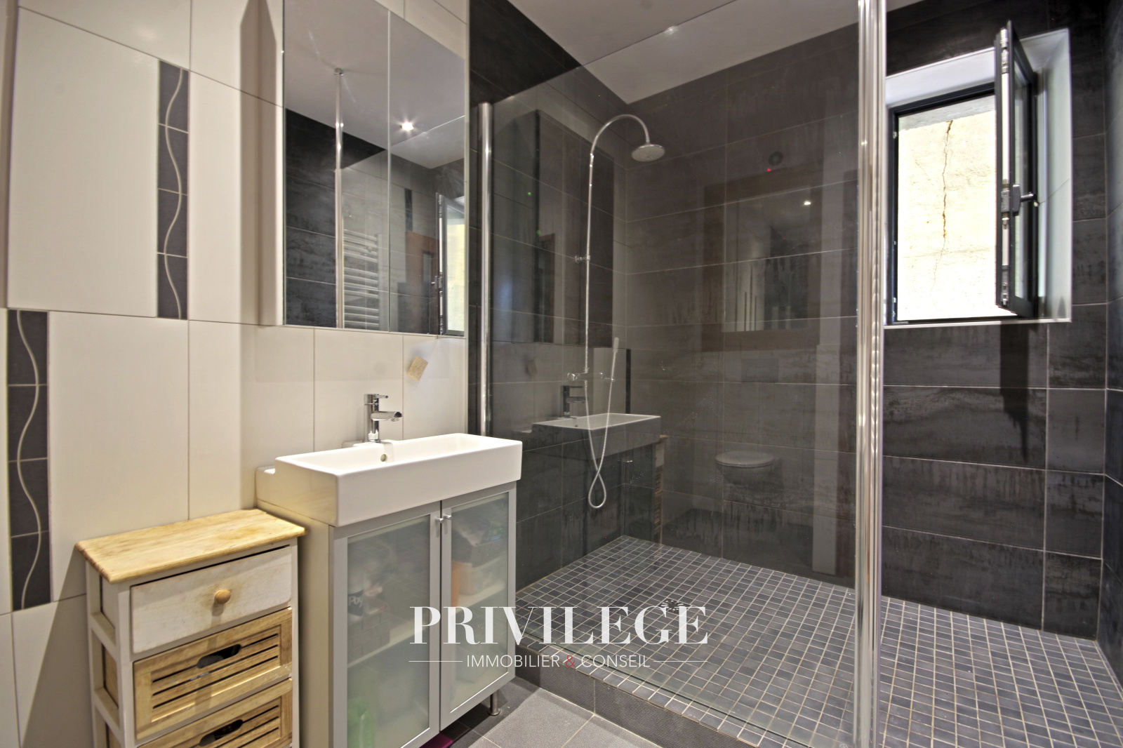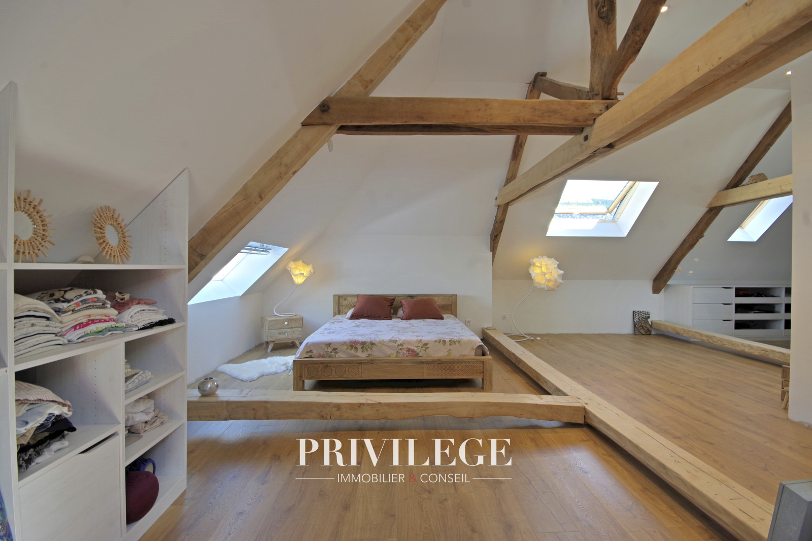 Premier étage : Trois chambres spacieuses. Un grand dressing pouvant être aménagé en chambre supplémentaire. Une salle d'eau moderne avec WC.