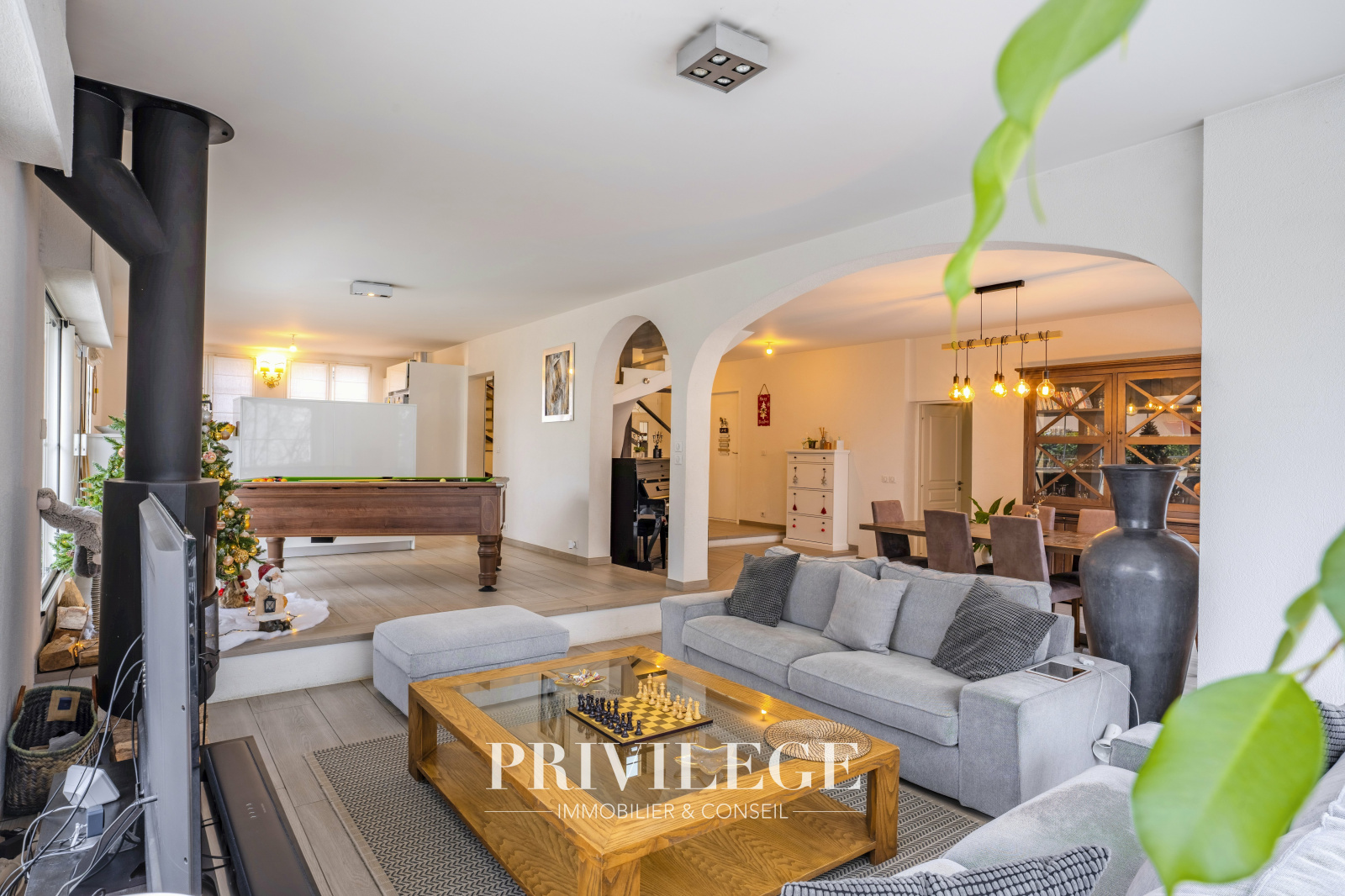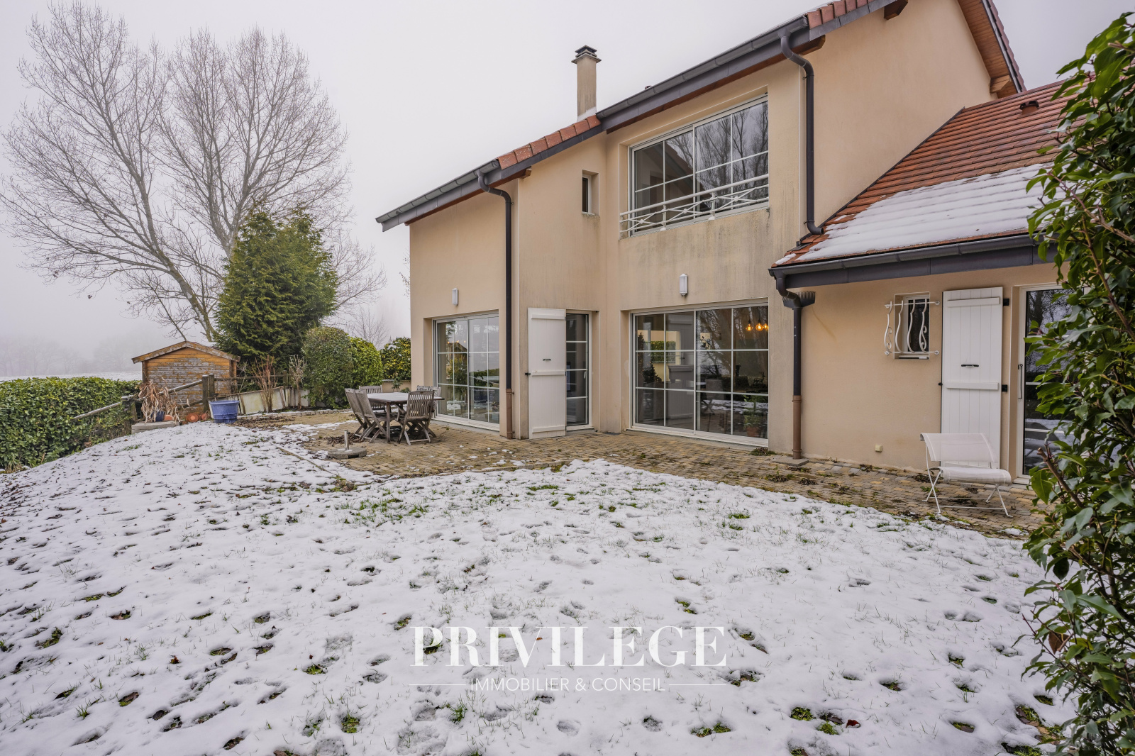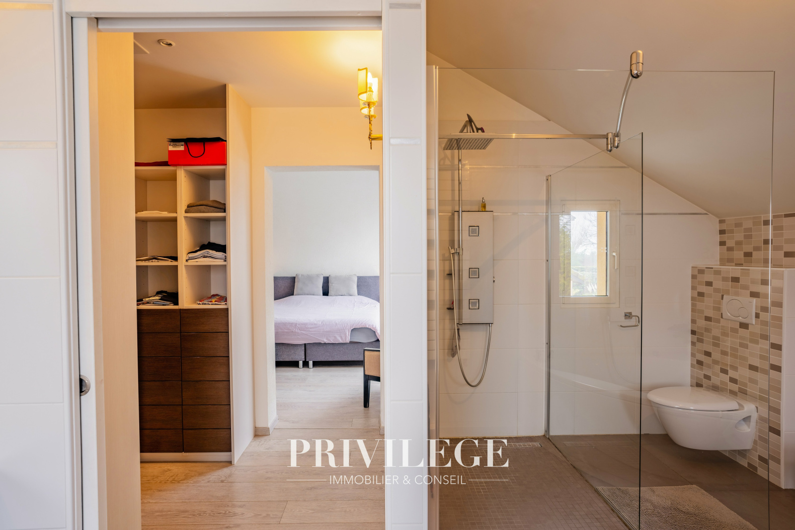 Située dans une résidence sécurisée avec piscine chauffée, belle maison lumineuse construite avec des matériaux de qualité. Les nombreuses baies vitrées offrent une belle luminosité et une vue imprenable sur la végétation. A 5 mn de Bardonnex, 10 mn de Carouge et 15 de Genève, à proximité des commerces et du centre village du Chable, des écoles et des transports ainsi que des axes autoroutiers, elle offre toutes les commodités attendues par une famille. La maison dispose d’une surface habitable de 198 m2 sur deux niveaux construits sur une parcelle de 574 m2. Elle dispose de 5 chambres dont 2 en suite et de 4 salles de bain avec toilettes, d’une cuisine semi-ouverte parfaitement équipée, d’un beau double salon avec une salle à manger ouverts sur les terrasses et le jardin. Le terrain clos dispose de terrasses dont l’orientation plein sud permet un ensoleillement optimum. Très peu de vis-à-vis et une vue à 180° sur la végétation verdoyante et le foret avoisinante. Aucuns travaux à prévoir.