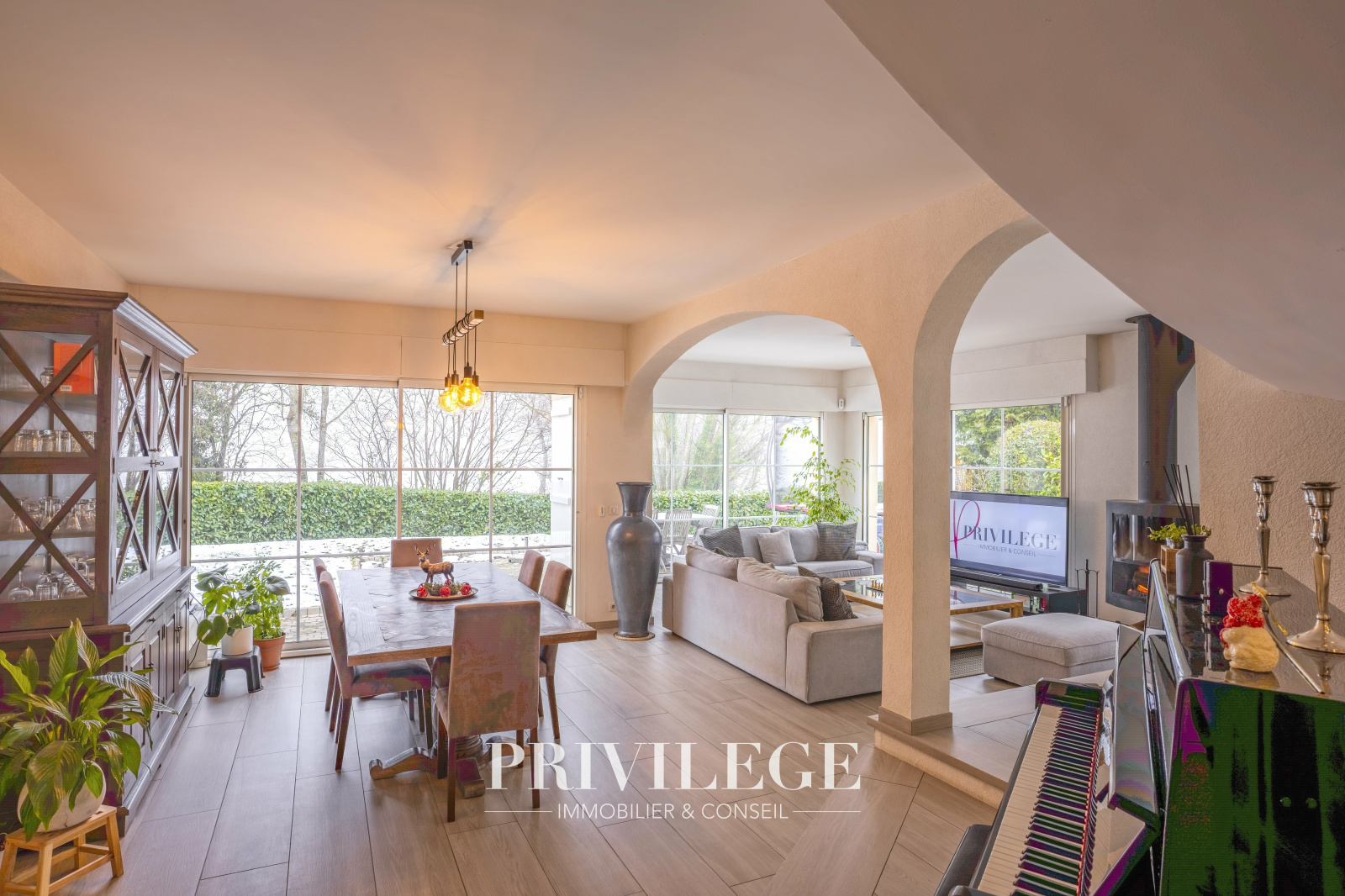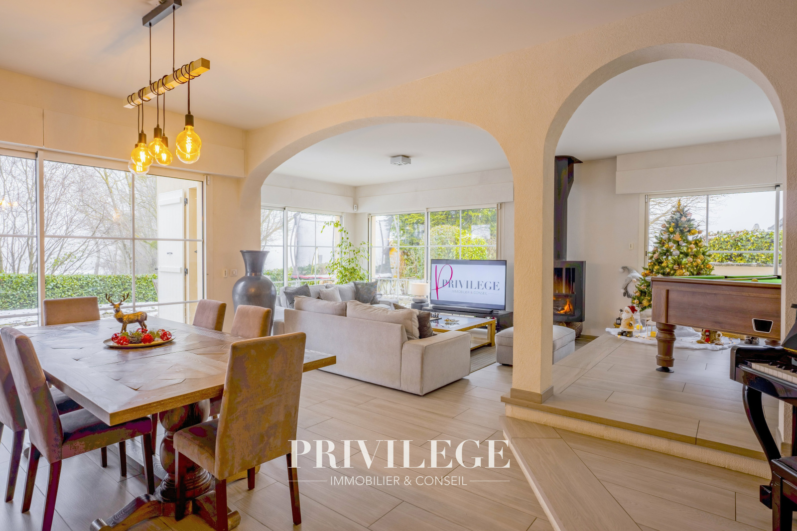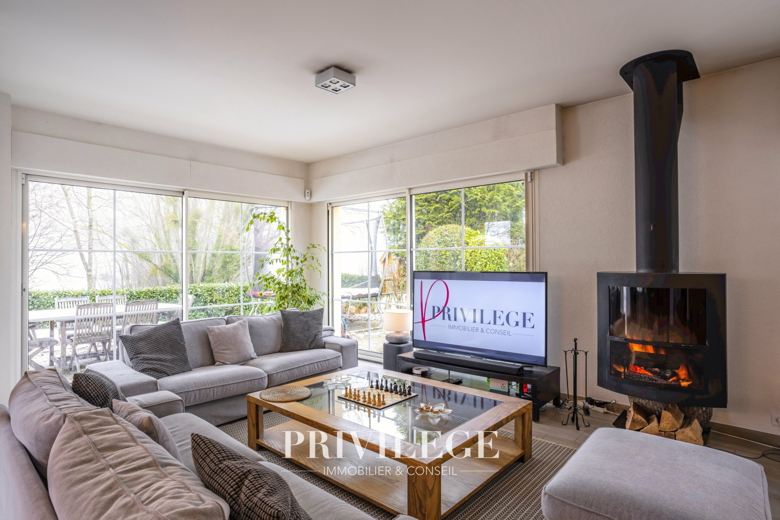 Située dans une résidence sécurisée avec piscine chauffée, belle maison lumineuse construite avec des matériaux de qualité. Les nombreuses baies vitrées offrent une belle luminosité et une vue imprenable sur la végétation. A 5 mn de Bardonnex, 10 mn de Carouge et 15 de Genève, à proximité des commerces et du centre village du Chable, des écoles et des transports ainsi que des axes autoroutiers, elle offre toutes les commodités attendues par une famille. La maison dispose d’une surface habitable de 198 m2 sur deux niveaux construits sur une parcelle de 574 m2. Elle dispose de 5 chambres dont 2 en suite et de 4 salles de bain avec toilettes, d’une cuisine semi-ouverte parfaitement équipée, d’un beau double salon avec une salle à manger ouverts sur les terrasses et le jardin. Le terrain clos dispose de terrasses dont l’orientation plein sud permet un ensoleillement optimum. Très peu de vis-à-vis et une vue à 180° sur la végétation verdoyante et le foret avoisinante. Aucuns travaux à prévoir.