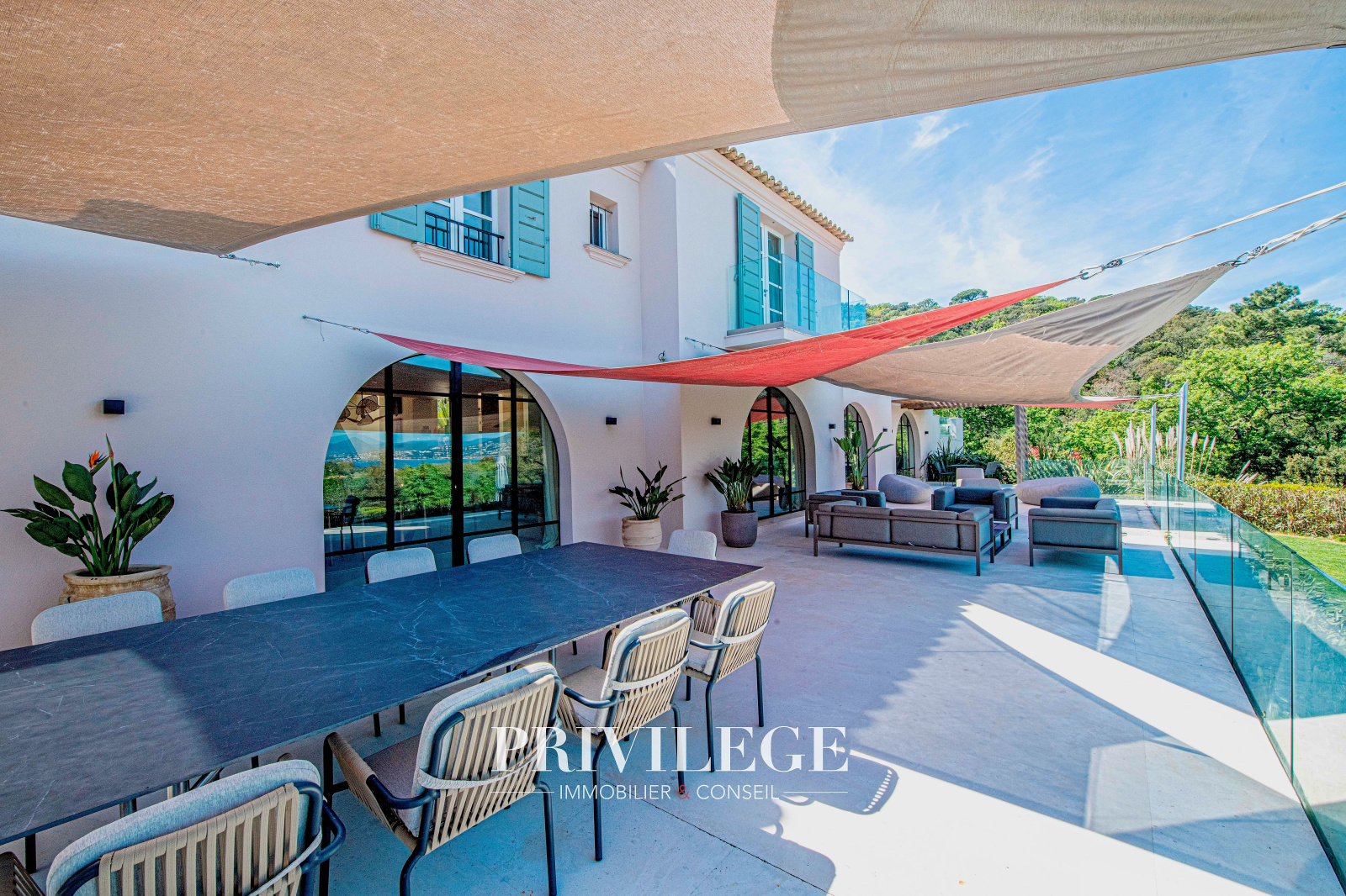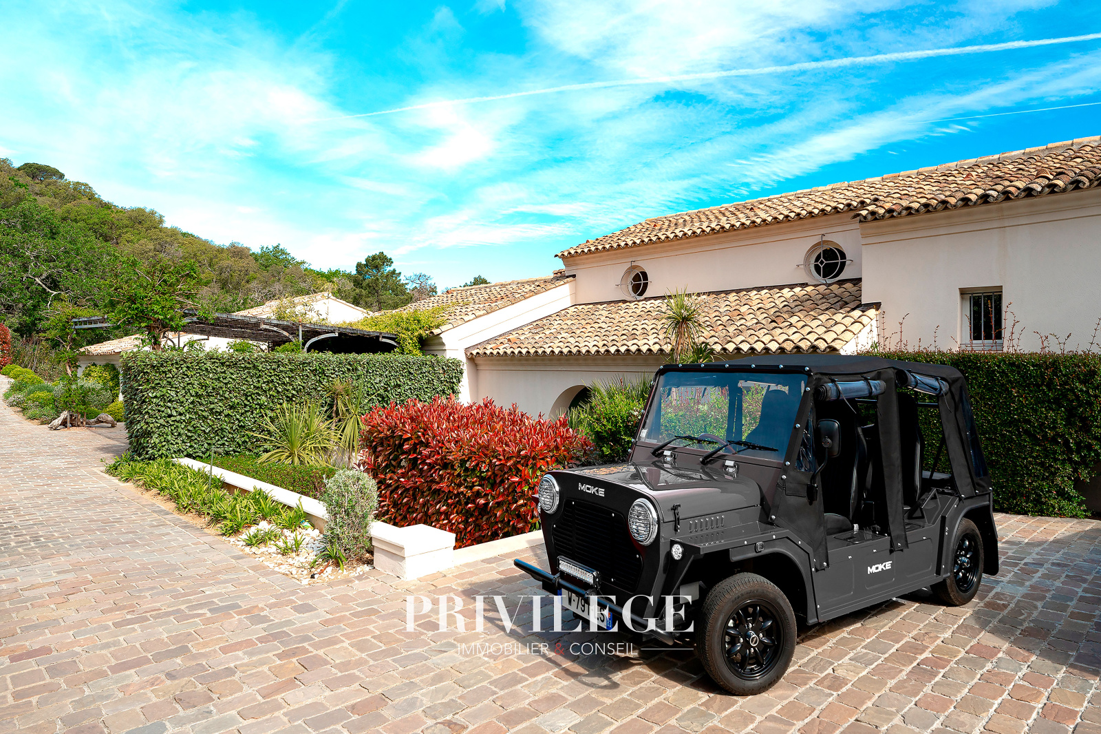 Idéalement située entre les mythiques plages de Pampelonne et le village légendaire de Saint-Tropez, cette propriété d’exception incarne l’harmonie parfaite entre élégance contemporaine et charme provençal. Lovée au cœur d’un environnement préservé, elle offre un panorama enchanteur sur la campagne et la Méditerranée, où chaque coucher de soleil devient un spectacle privé.
