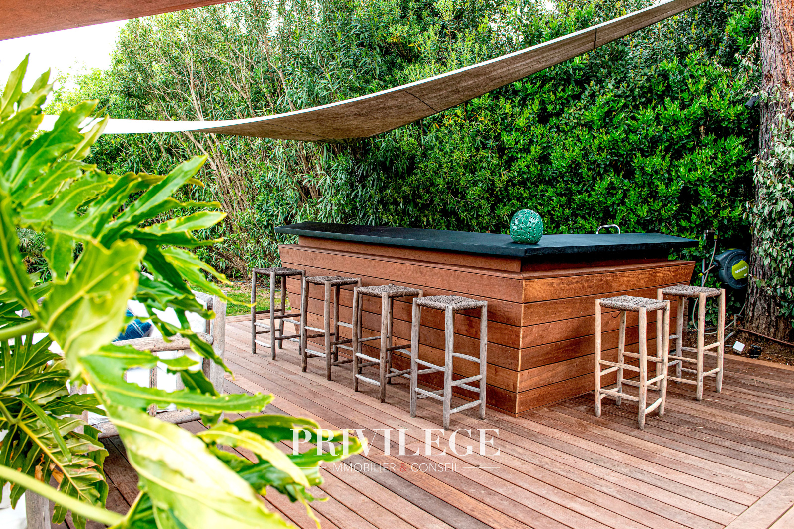 Édifiée sur un somptueux terrain paysager, la villa dévoile une architecture aux lignes épurées et des volumes majestueux. Les vastes pièces de réception près de 100 m² s’ouvrent largement sur les terrasses et la piscine à débordement, effaçant la frontière entre intérieur et extérieur. Lumière, sérénité et raffinement y règnent en maître.